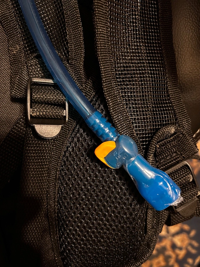 Brand New, Never Used , Hydration Backpack is in excellent condition, no rips, holes or stains, retail tag still attached, mouth piece still sealed in plastic, great for biking, hiking, kayaking or any trip where liquid refreshment is needed Removable blue water bladder with plastic reservoir cap for filling, hydration hose comes with on/off valve. $15 cash only For Sale By: Owner