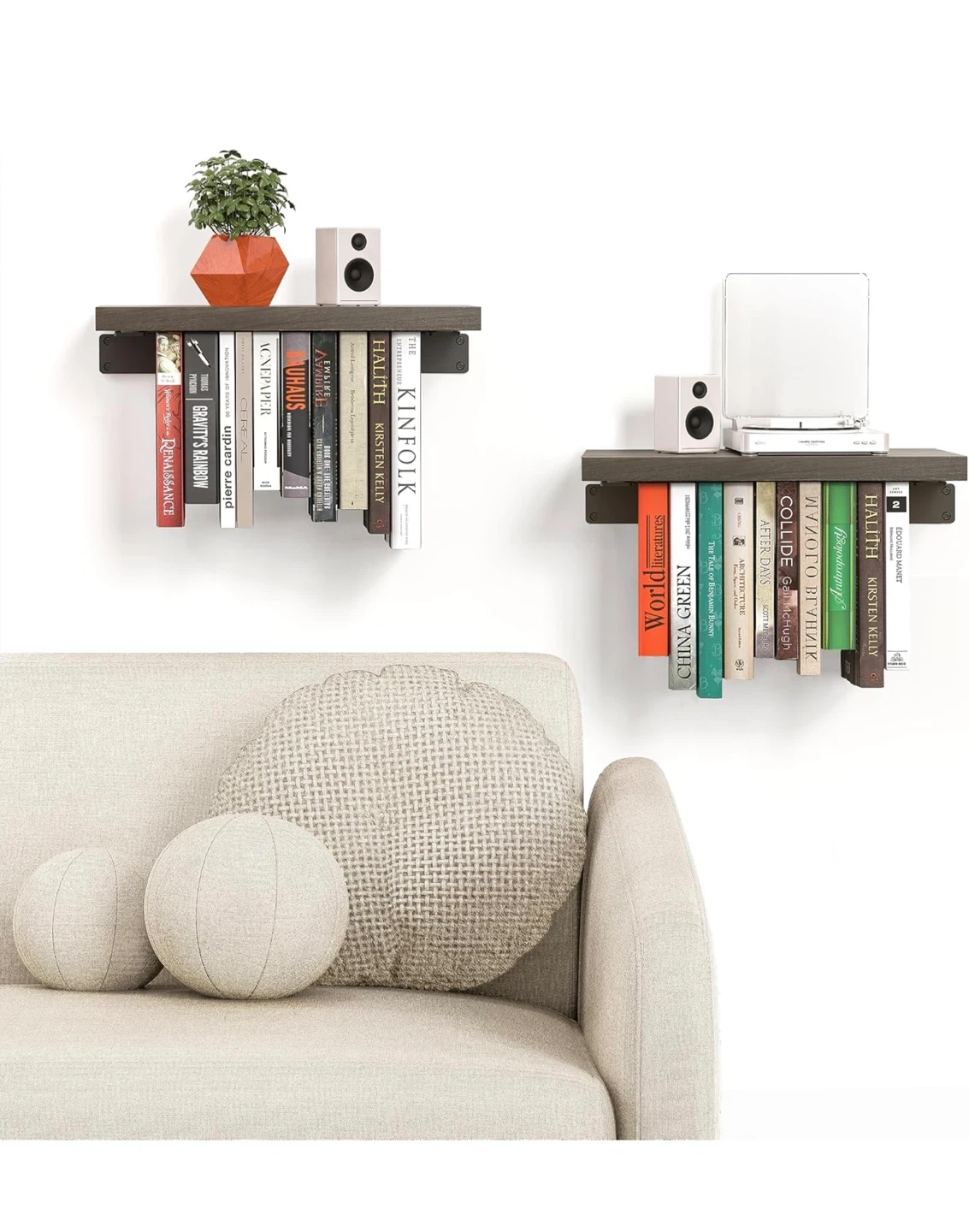 Selling a set of NANATI floating bookshelves in the heavy burn color. These shelves are made of 100% natural Paulownia wood and feature a super load support bracket. They're perfect for saving space and adding a unique touch to your wall decor. Originally bought for $68.76