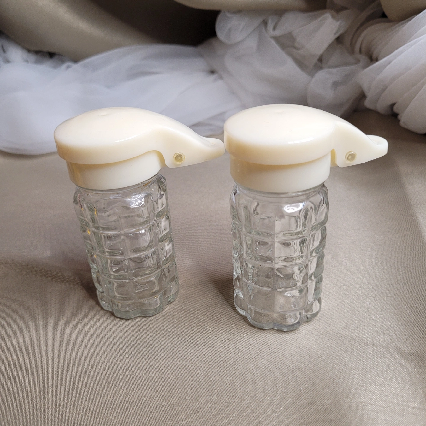 Pair of Glass Vintage Salt & Pepper Shakers with Plastic Tops Excellent Condition please see all pictures Please See all my Other Listings, Bundle & Save for a Better Deal! Located in Bradford, May be able to Meet, Shipping Offered at Buyers Expense, Please contact me for more Info & to make arrangements, sorry no holds without an ET, Thank you so much for Looking!