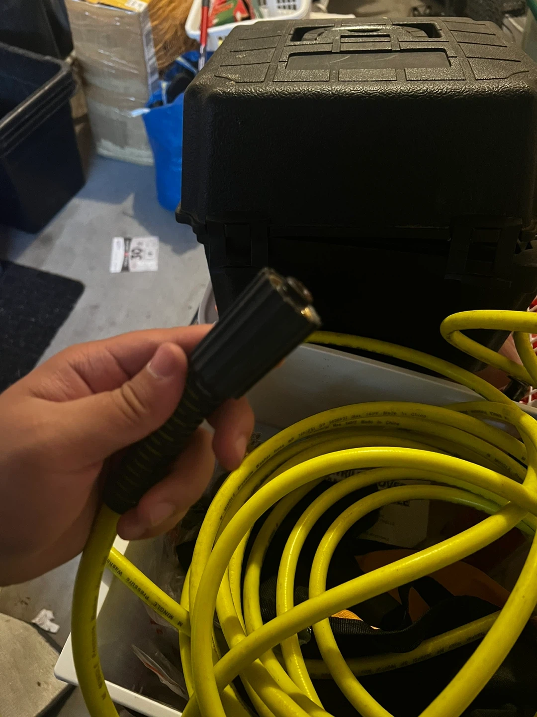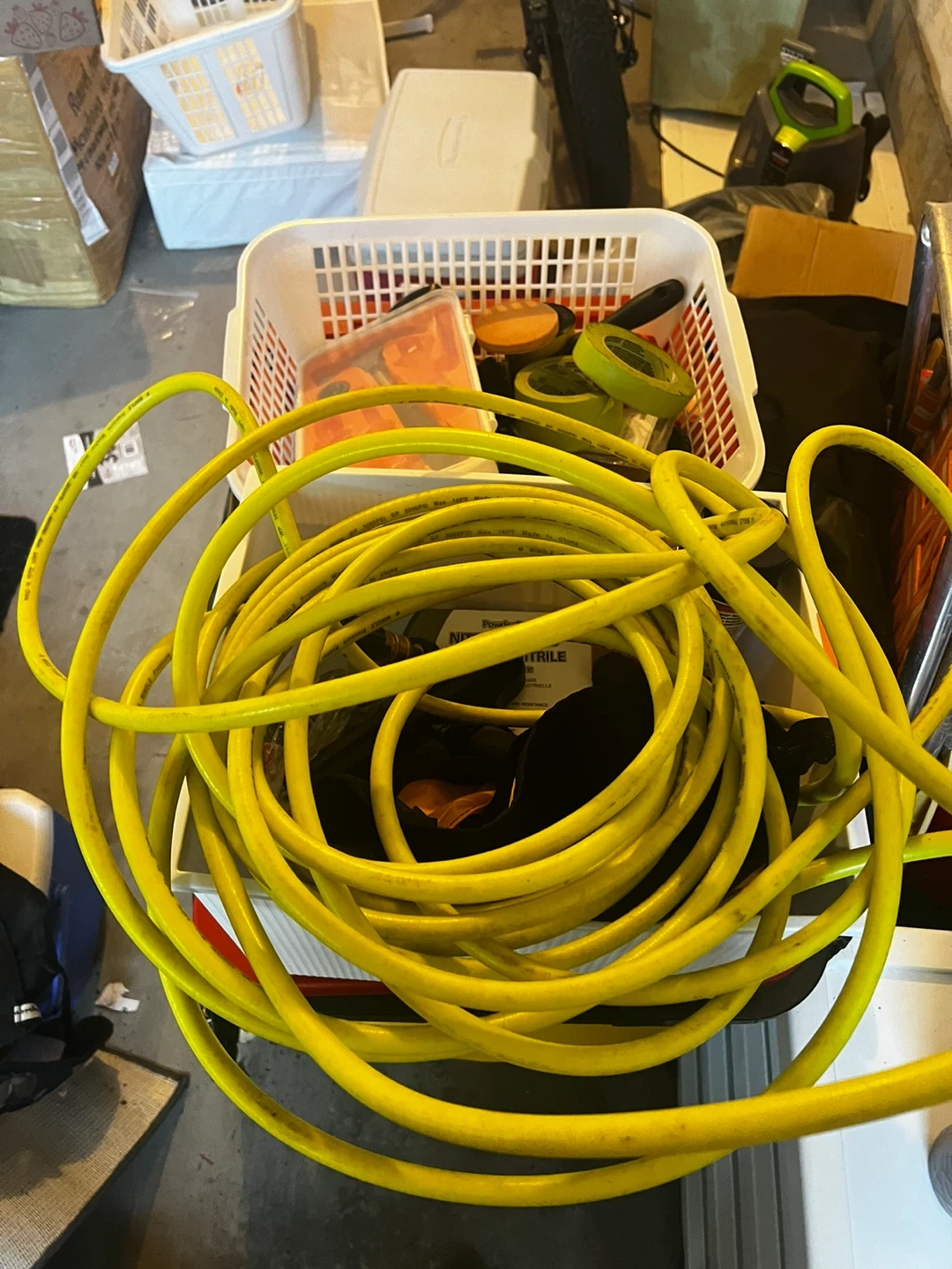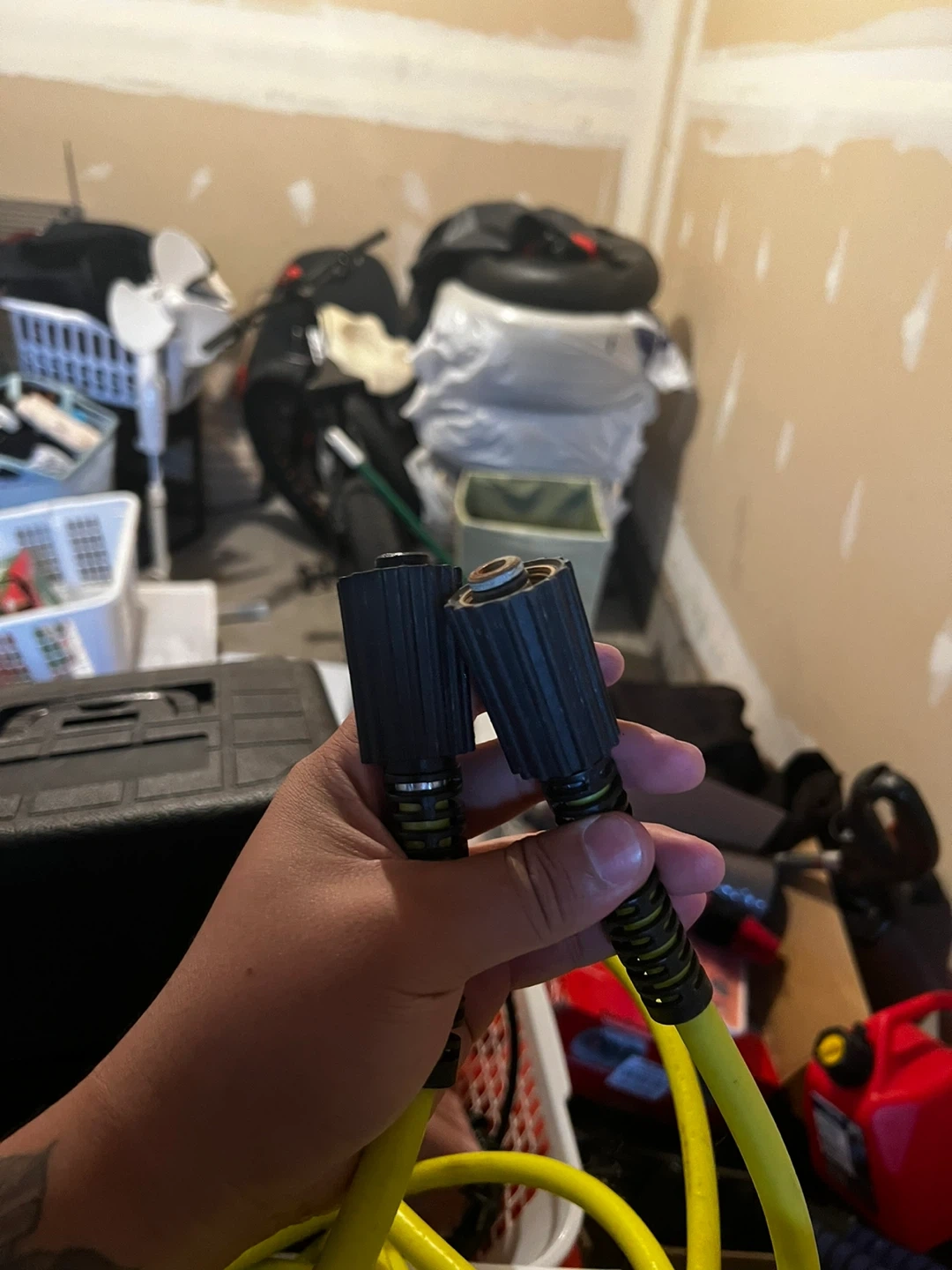 Selling a 50ft pressure washer hose. It's in good condition and ready to use for your cleaning needs. Perfect for washing your car or cleaning your deck this summer!