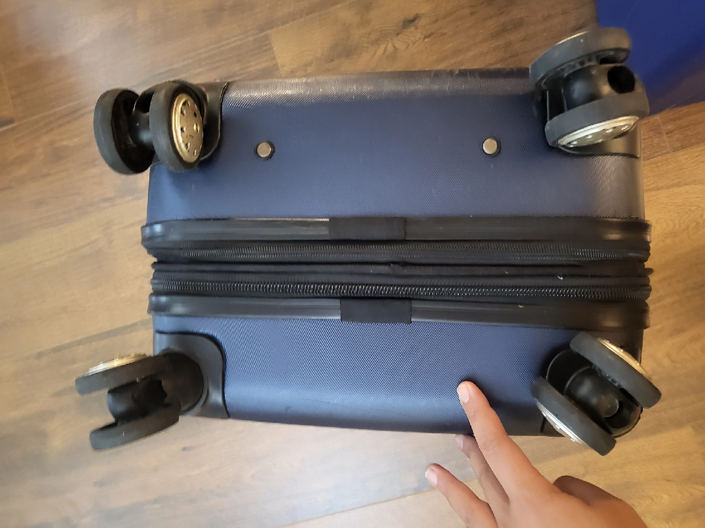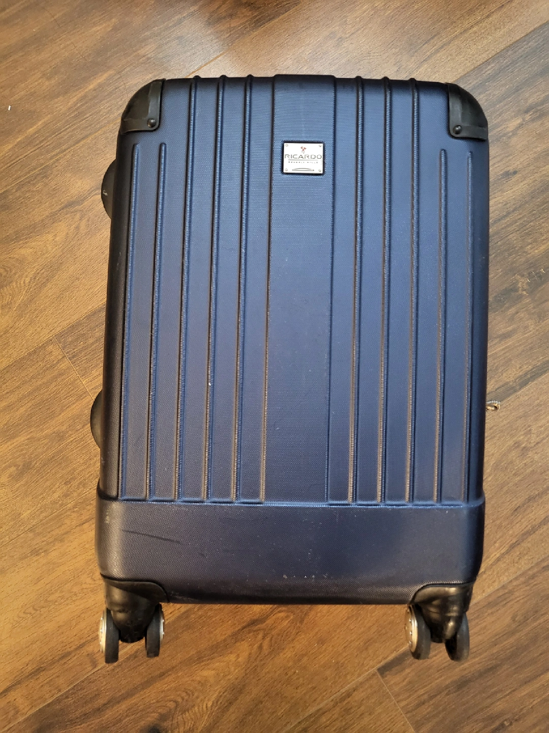 Ricardo Beverly Hills carry-on luggage in good shape. The wheel works great and no major dents or damaged. Priced low because the handle is sticky. 23" × 13" x 9"