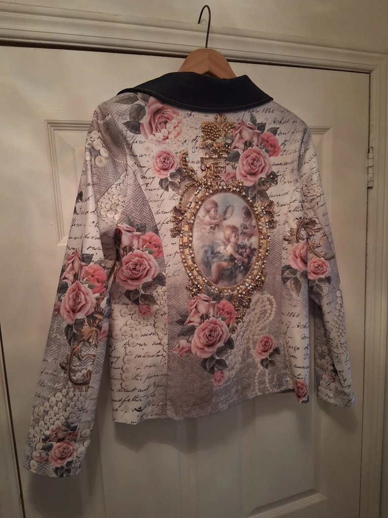 This blazer is made in Turkey. It has a lovely flower design on the front & back. Size: Large Available for pickup in Mississauga at the intersection of Bud Gregory and Gatineau Ave. Cash only