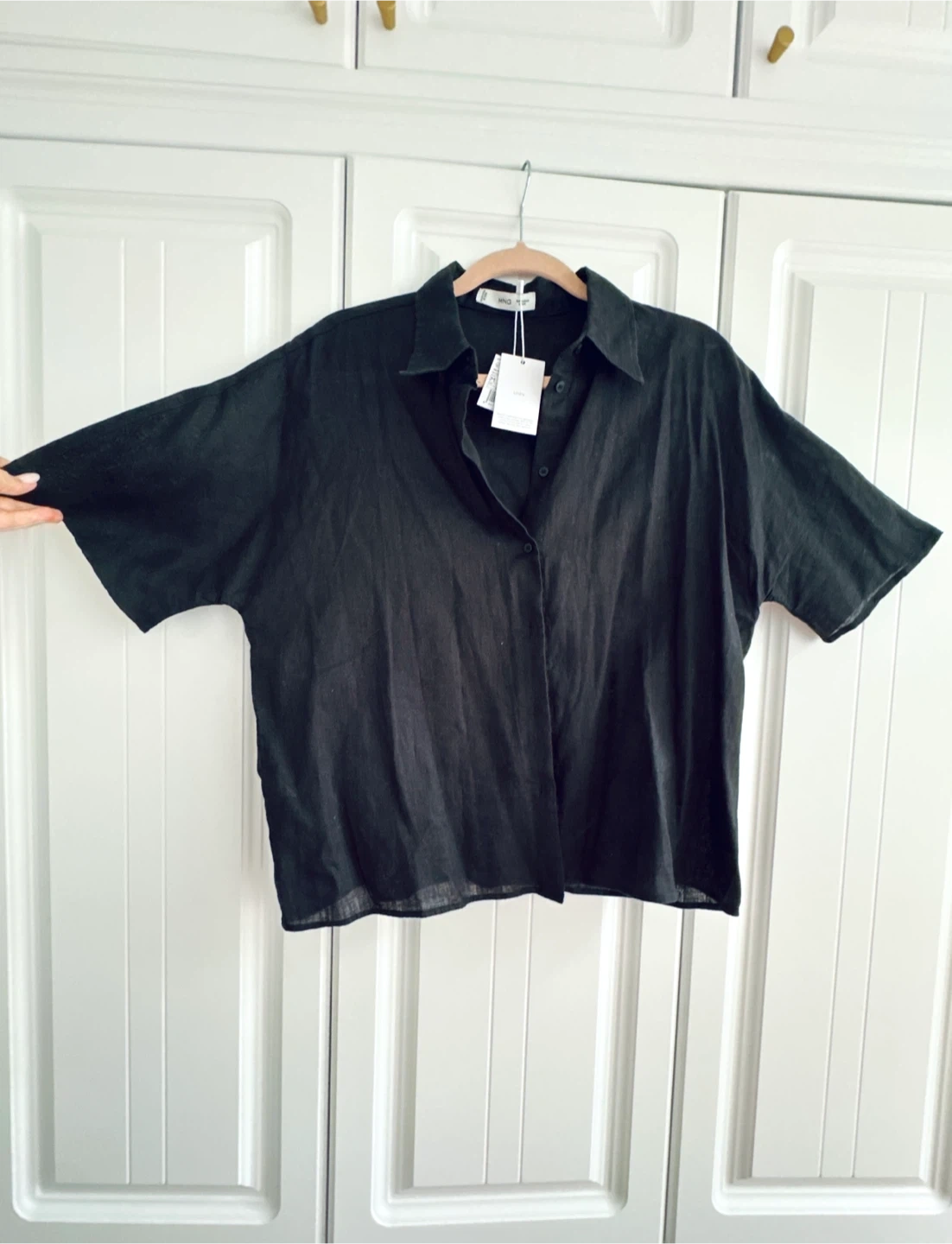 Selling a brand NEW with TAGS Mango black linen shirt in size M. It’s made of natural, breathable, and lightweight linen, which is so comfy and dries quickly. Perfect for layering over a dress or pairing with jeans. Very cool piece. Brand New with tags on! Never used.