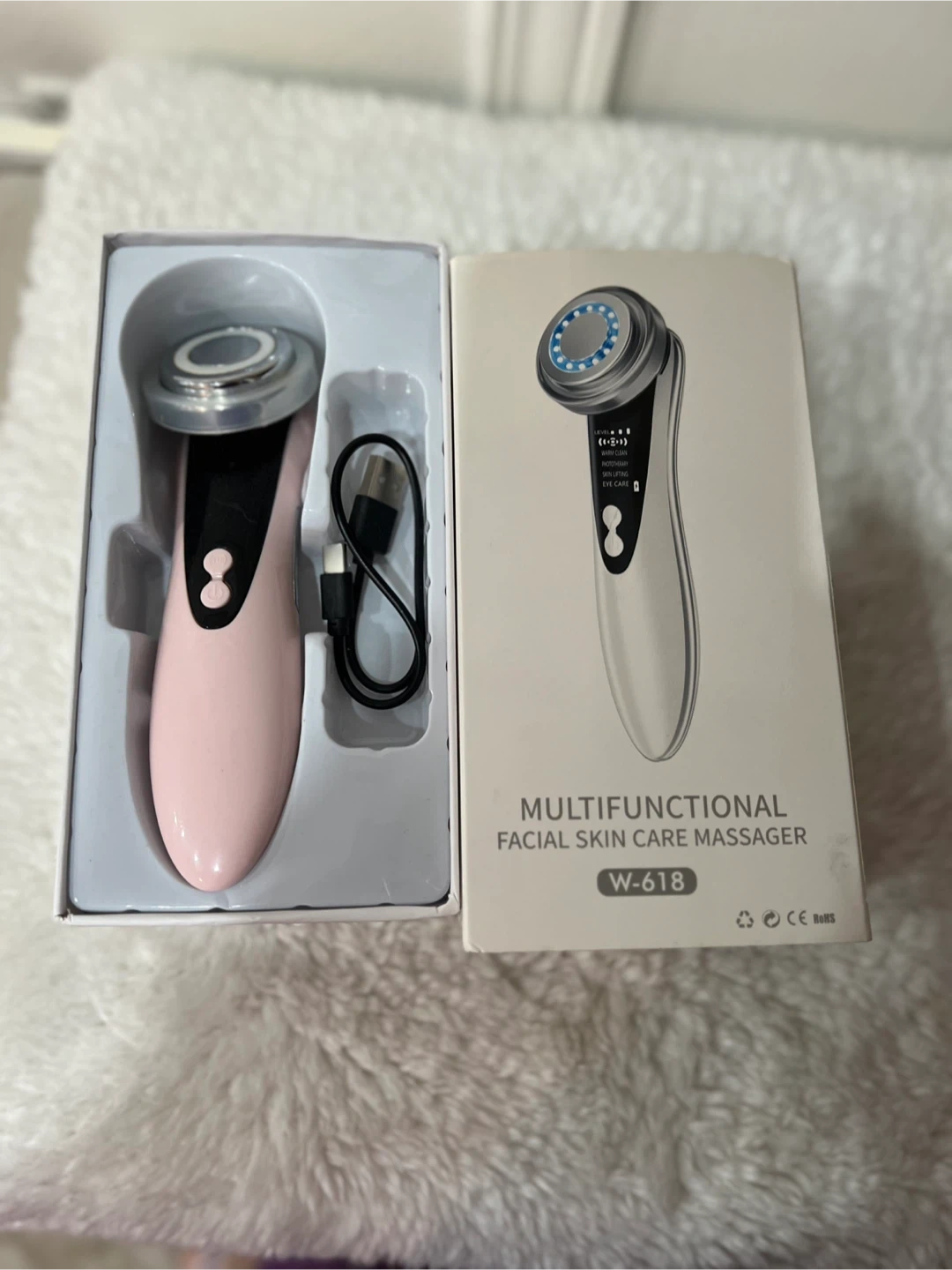 I'm selling a multifunctional facial skin care massager, model W-618. It warms pores and cleans up deep pores. It also fully introduces skincare products and enhances cell activity. Promotes blood circulation, enhances skin smoothness, and elasticity. It also promotes the absorption of eye cream to achieve eye beauty