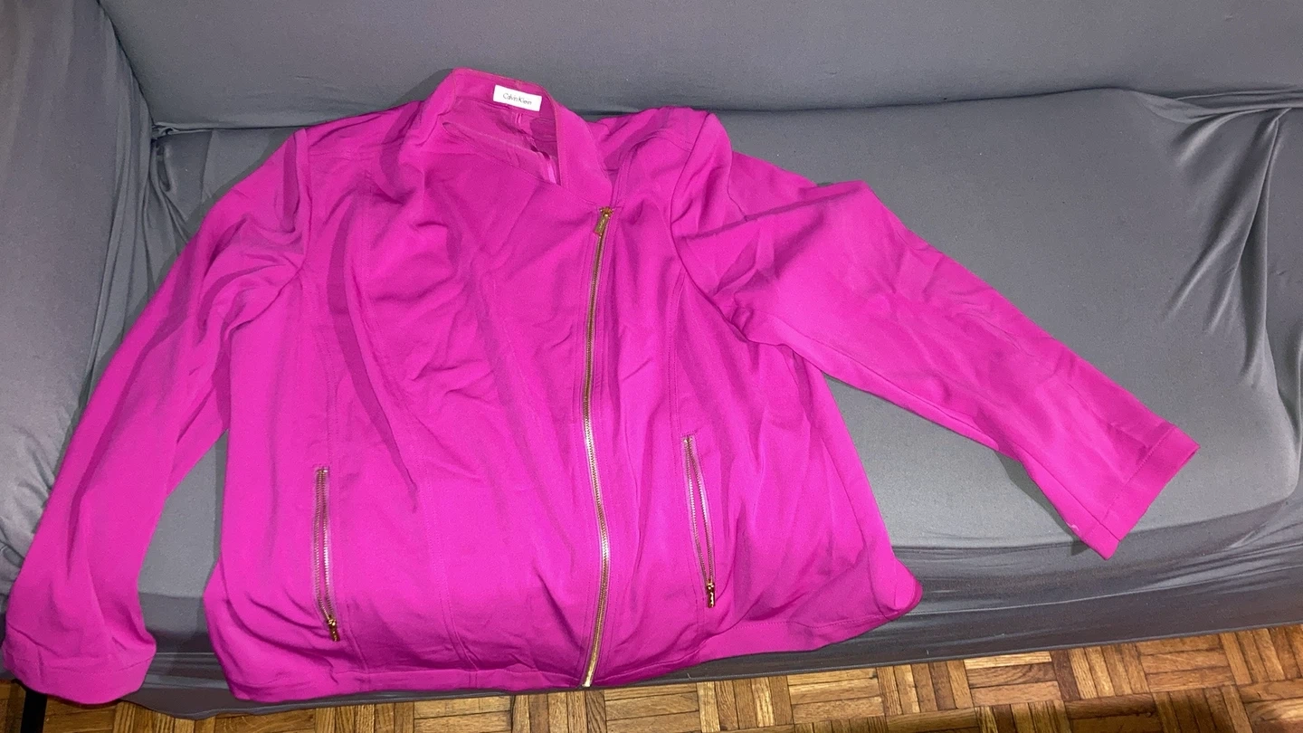 Selling a magenta Calvin Klein jacket! It has a zipper and is in great condition. A stylish addition to any wardrobe! I think size Large