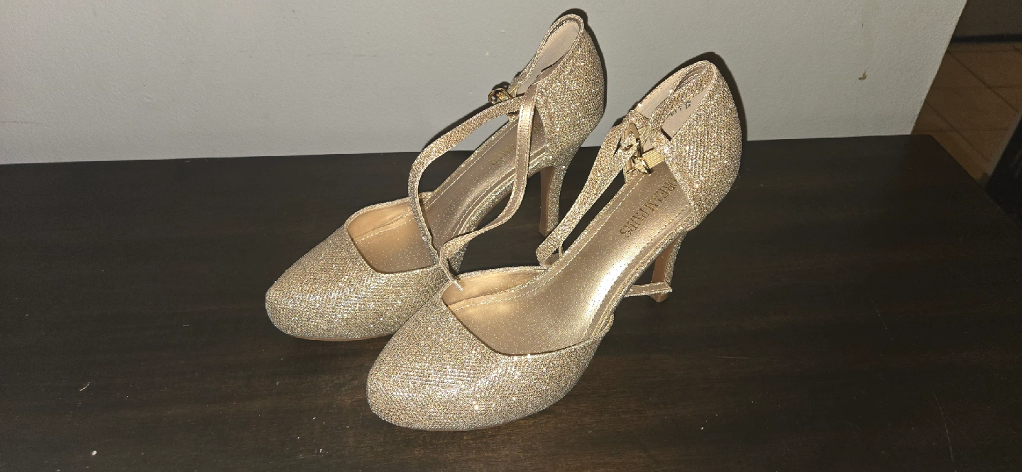 Selling a pair of heels in a beautiful gold glitter finish! They're a size 10 and in great condition. Perfect for a night out or a special occasion, these heels will add a touch of sparkle to any outfit