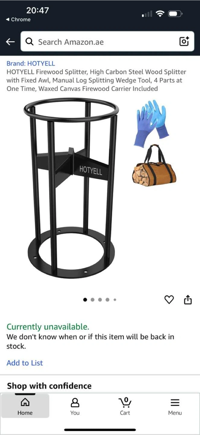 πŸ”₯ HOTYELL Firewood Splitter – Brand New πŸ”₯ πŸ’° Price: $60 each πŸͺ΅ Heavy-duty wood splitter made of high carbon steel βš’οΈ Manual log splitting wedge – splits logs into 4 parts at once 🧀 Comes with protective gloves πŸ‘œ Includes a waxed canvas firewood carrier for easy transport πŸ‘Œ Perfect for backyard, camping, or fireplace use πŸ“¦ Condition: Brand New in packaging πŸ“¦ Quantity available: 4 units πŸ“ Pickup in Waterloo ✨ Check my other listings for more great deals!