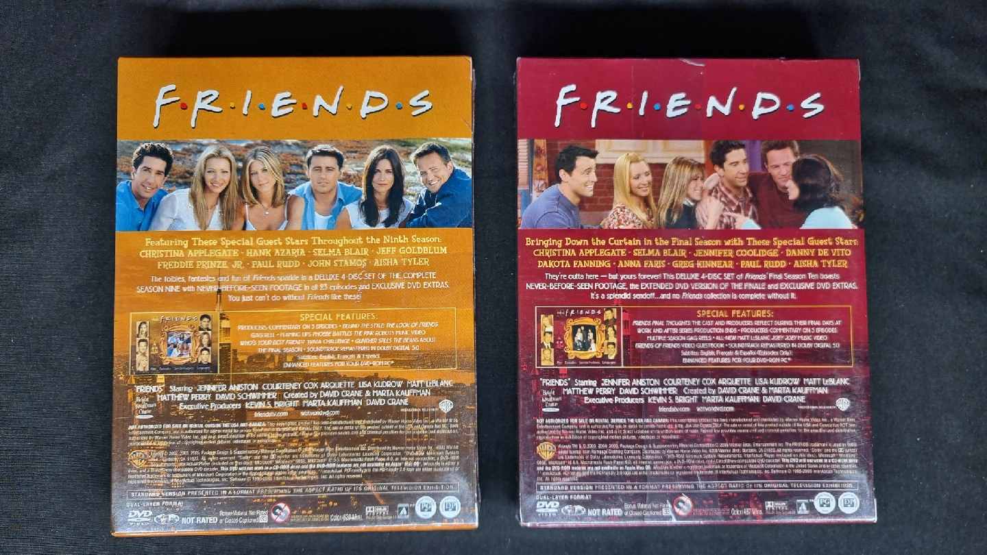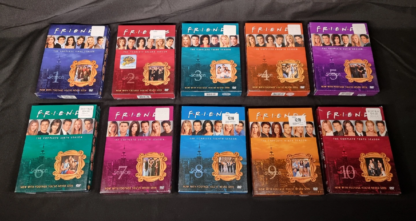 Selling only as complete set. Selling a complete DVD set of the TV series Friends, including all ten seasons! This set is perfect for any fan of the show. Each season is individually packaged and in mint condition. Enjoy hours of laughter and heartwarming moments with your favourite characters! Mint/pristine condition. Unopened. Original seal. No pet non-smoking household. Check out my other listings. All are mint and unopened except one - which is clearly labelled. I am a verified user. Cash only.