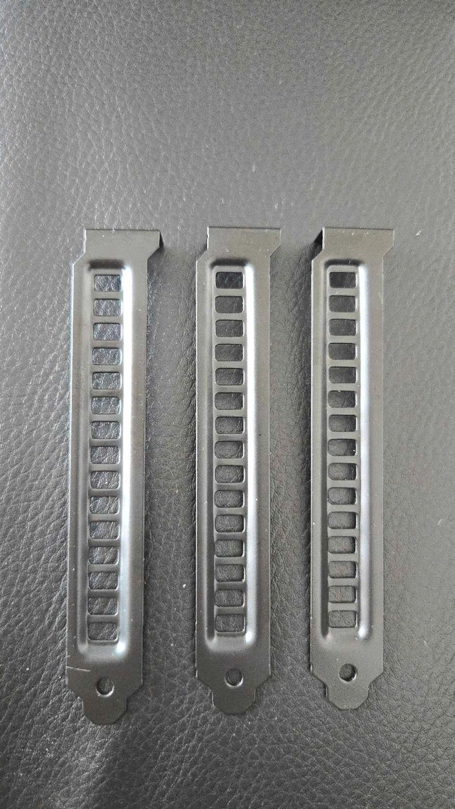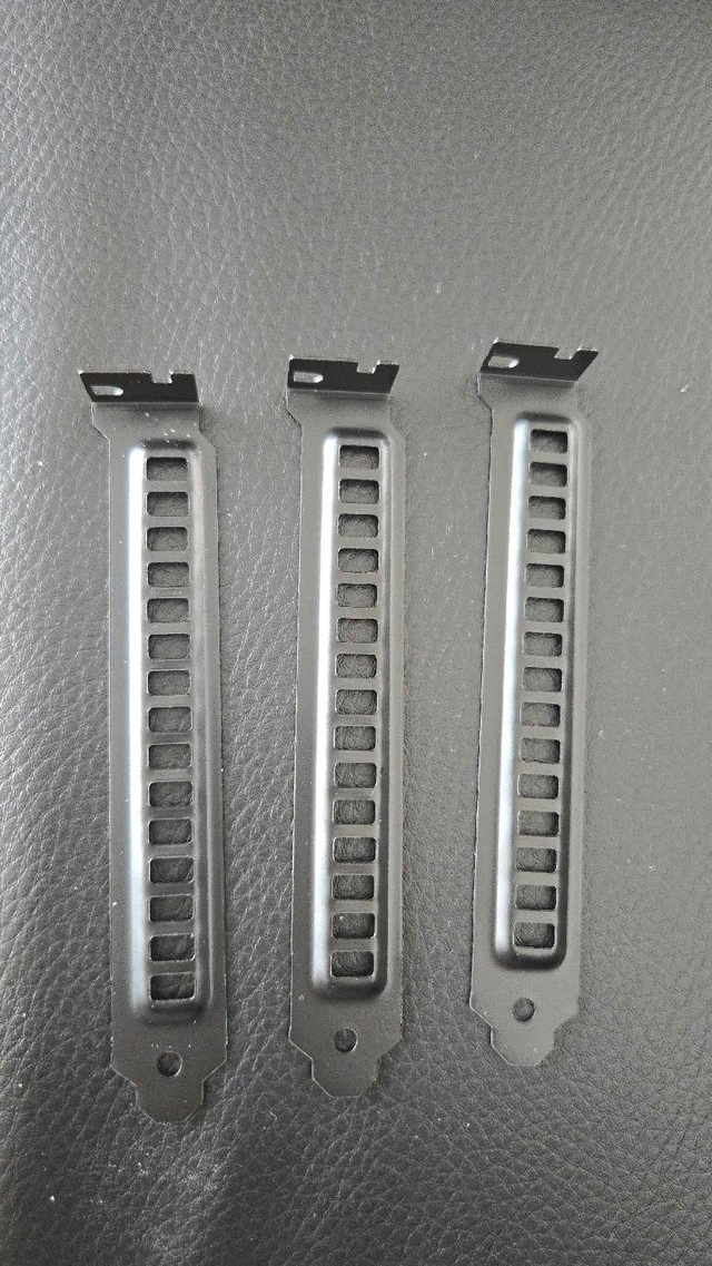 These are three used PC expansion slot covers in good condition, ready to help keep dust and debris out of your computer case. They're like the unsung heroes of PC maintenance! If the ad's up, they're available, so no need to ask – just imagine them already installed, doing their job, while you enjoy a whimsical sense of completeness.