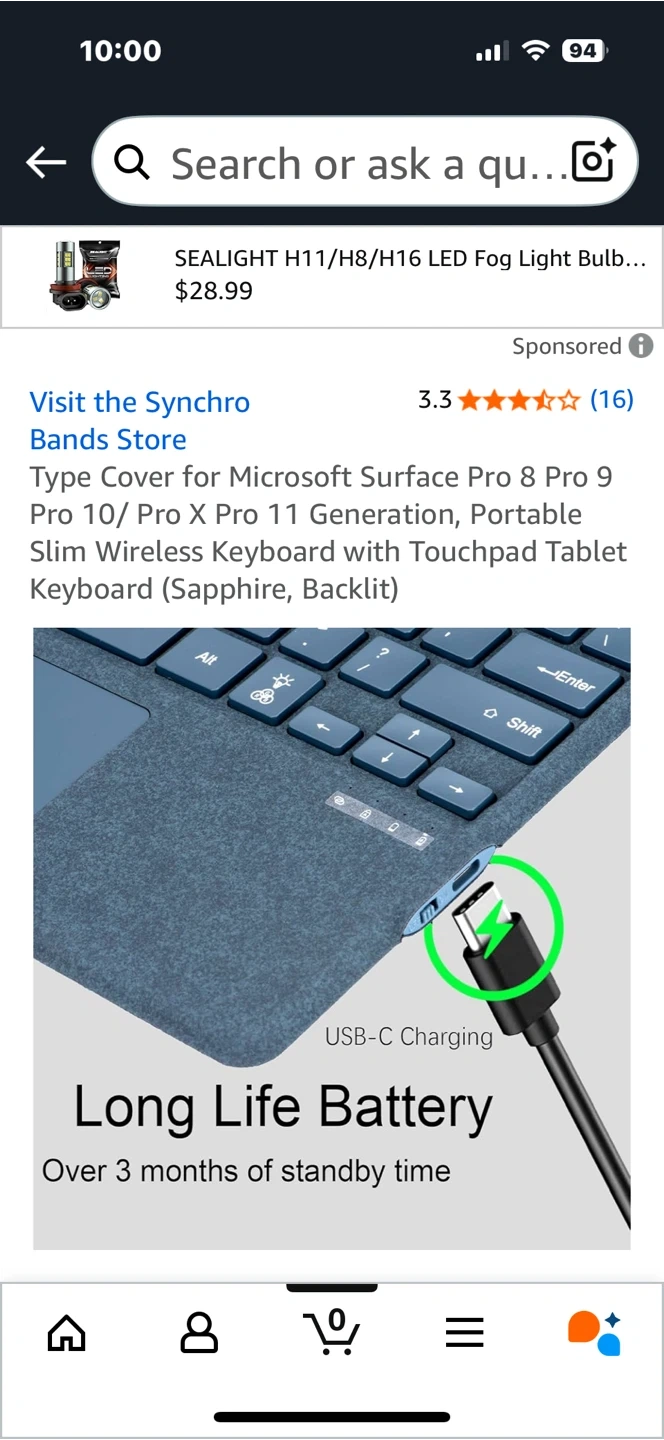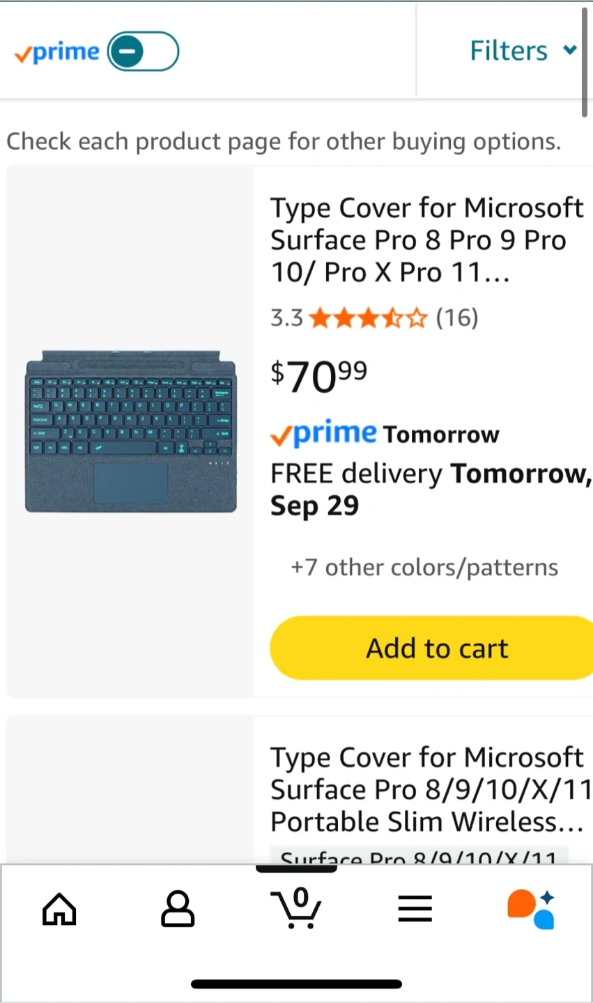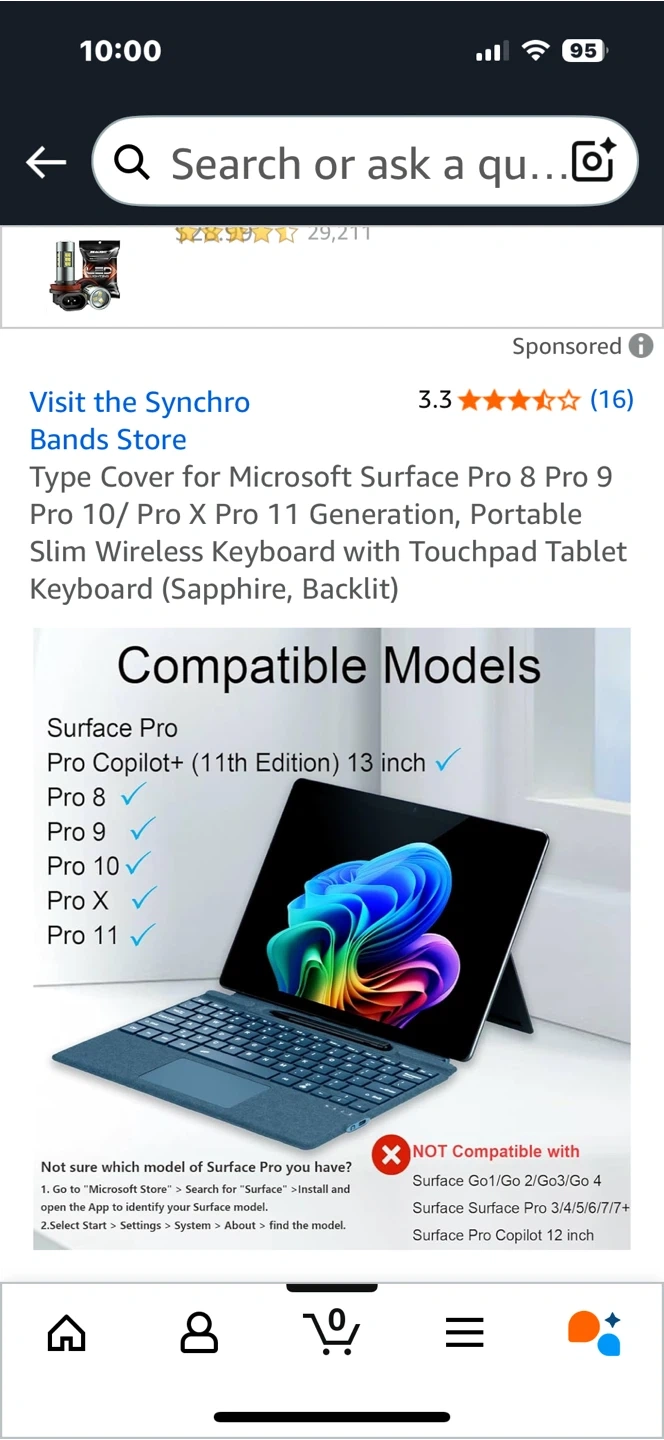 Looking to sell a Microsoft Surface Pro keyboard cover in Sapphire. It's compatible with Surface Pro 8, 9, 10, Pro X, and Pro 11 models. This portable slim wireless keyboard has a touchpad and 7-color backlight with 3 adjustable brightness levels. It's magnetically detachable, making it easy to attach and use quickly!