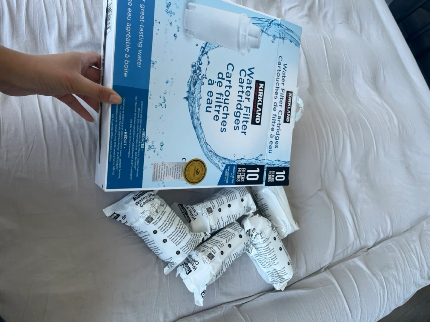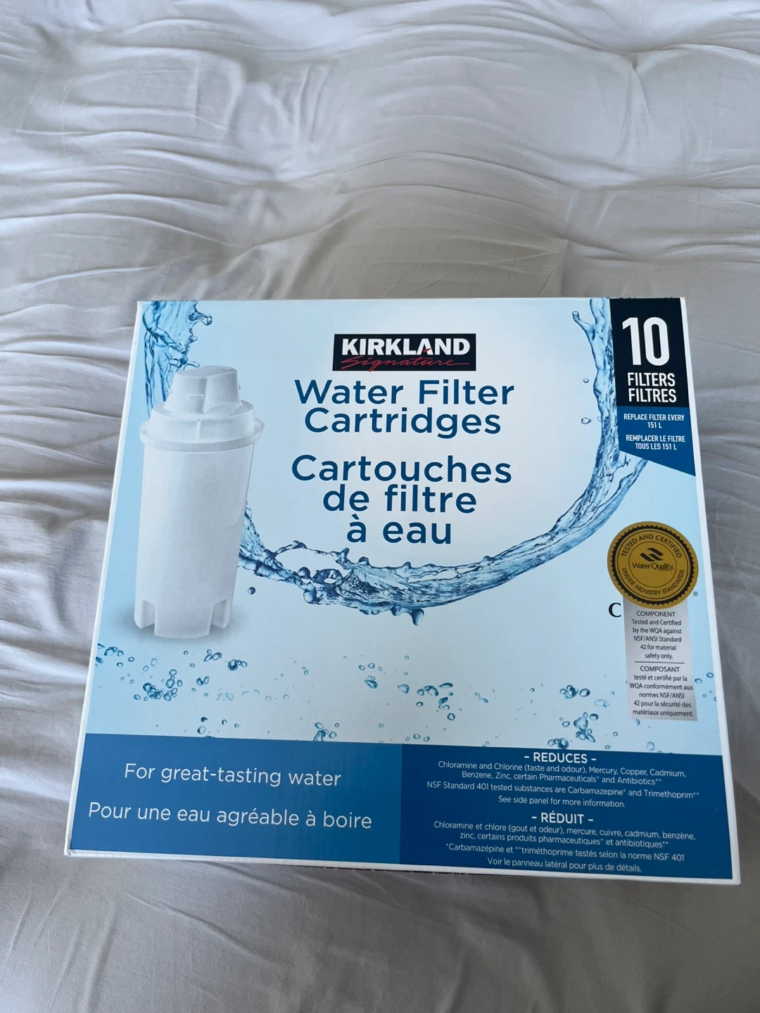 Selling a pack of Kirkland Signature water filter cartridges! This box contains 5 filters, ready to provide great-tasting water. Replace filter every 30L