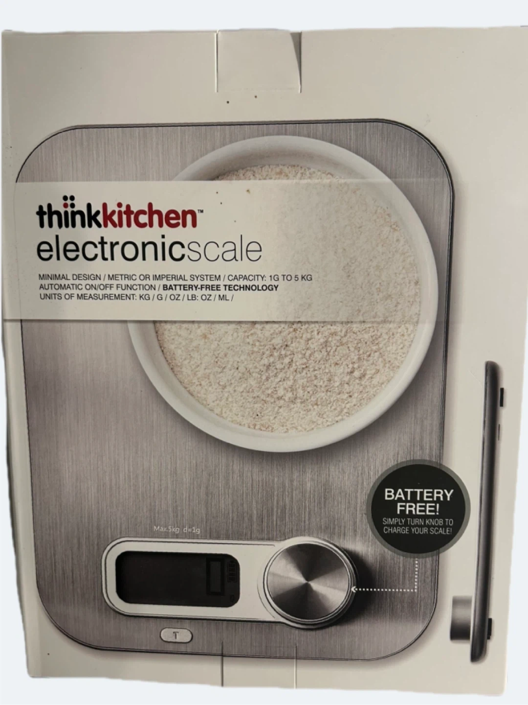 BRAND NEW - Selling a thinkkitchen electronic scale. It has a minimal design and can measure in both metric and imperial units. It has a capacity of 1g to 5kg and features automatic on/off function with battery-free technology! You can measure in kg, g, oz, lb, and ml