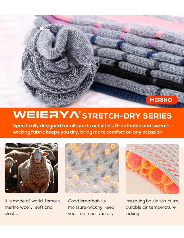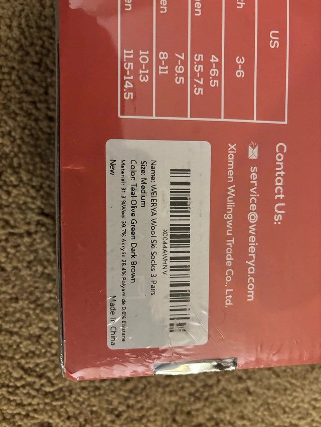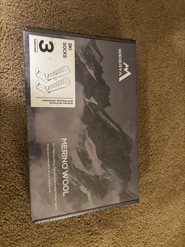 Selling a new in box WEIERYA Ski Socks 3 Pairs Pack for Skiing, Snowboarding, Outdoor Sports Performance Socks. (Size Medium, Colour teal, olive green and dark brown) (B07) For Sale By: Owner