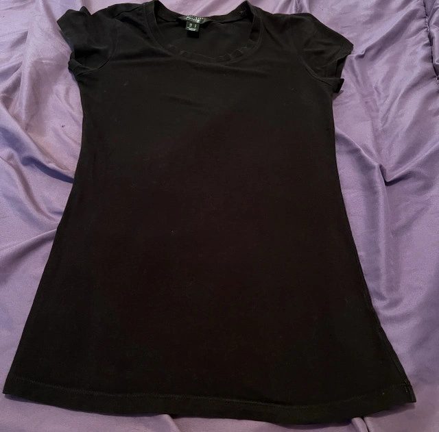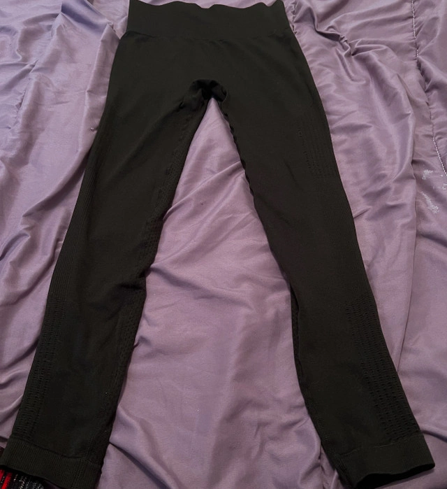 I am selling a bundle of used black women's clothing, all in good condition. The bundle includes a pair of flare pants, a pair of leggings, and three t-shirts. All items are size small. * Flare Pants * Leggings * 3 T-Shirts If the ad is up, it's available!