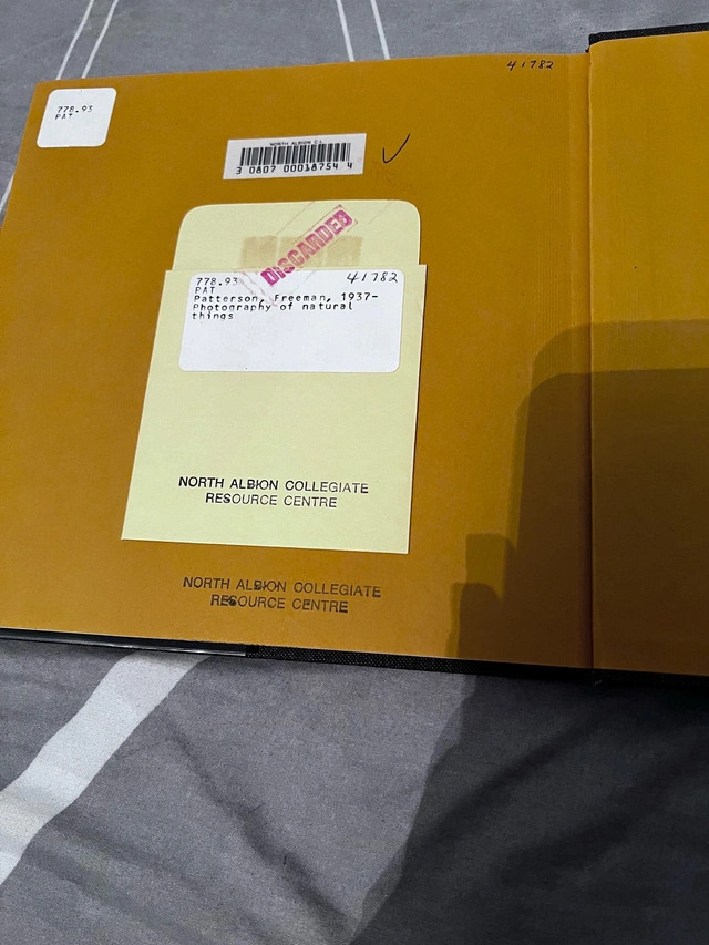 Explore the art of capturing nature through the lens with "Photography of Natural Things" by Freeman Patterson, a compelling hardcover book filled with inspiring photography techniques and insights. Although previously enjoyed, this book remains in good condition, offering a wealth of knowledge for both amateur and seasoned photographers alike. Additional details: * Author: Freeman Patterson * Format: Hardcover * Subject: Photography, Nature This book has journeyed through the shelves of a school library, bringing joy and knowledge to many students over the years. Now, it's ready for a new chapter in your photography adventures! Priced at $20, a great value for the wealth of information and inspiration it contains. If the ad is up, it's available!