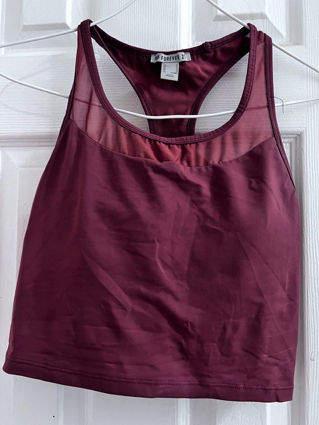 This Forever 21 activewear top is in great condition and perfect for workouts. It features a racerback design and mesh detailing, providing both style and functionality for your active lifestyle. It is a size medium.