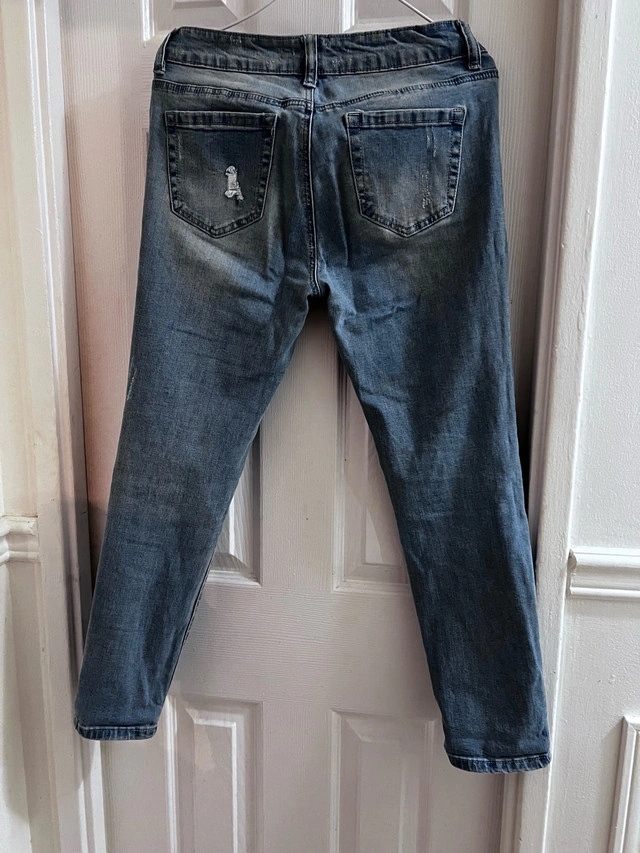 Add some edge to your wardrobe with these Wax Jeans Los Angeles distressed denim jeans in size 7. These jeans feature a stylish light wash with multiple rips on both legs, perfect for a bold fashion statement. Key Features: - Brand: Wax Jeans Los Angeles - Size: 7 - Style: Distressed with multiple rips - Wash: Light wash denim Looking to give these cool, distressed jeans a new home! Available? Absolutely! If the ad is up, they're ready to go! Based on similar listings on Kijiji, a reasonable price for these jeans is between $20 and $40 CAD, depending on the level of wear. Given the condition, I've priced these at $25.
