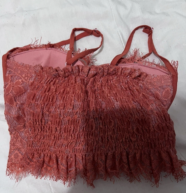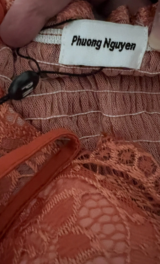 This is a brand new Phuong Nguyen lace bustier top in size medium. The top features delicate lace detailing and a flattering silhouette. It’s perfect for adding a touch of elegance to any outfit. Specifications: * Brand: Phuong Nguyen * Size: Medium * Colour: Rust * Material: Lace * Condition: New with tags If the ad's still up, it's still up for grabs!
