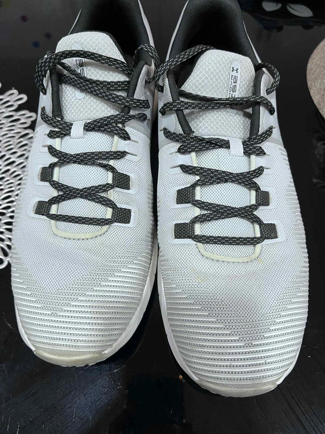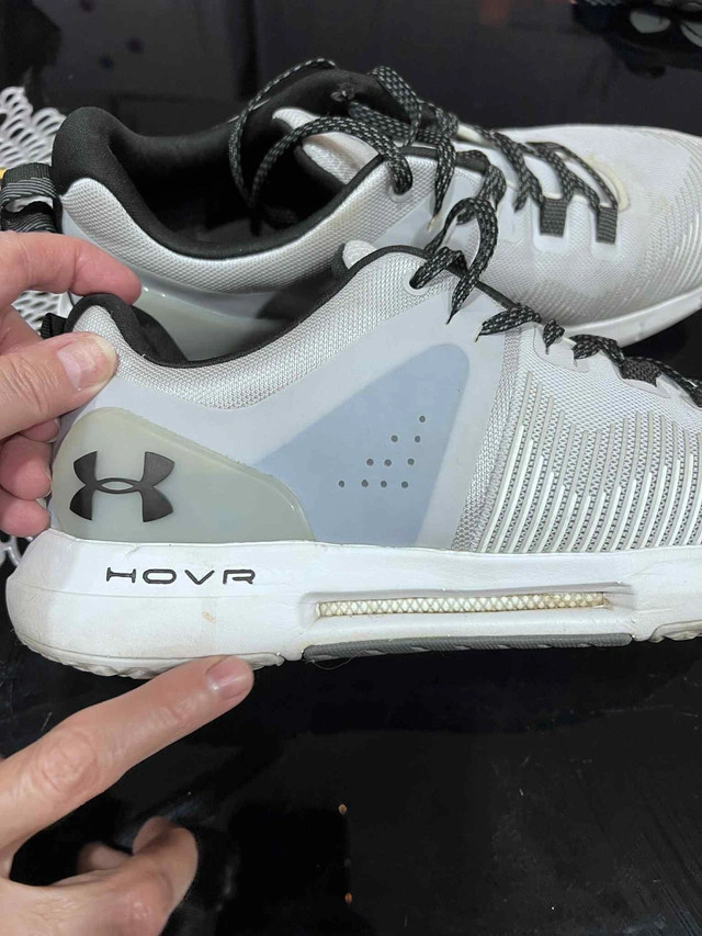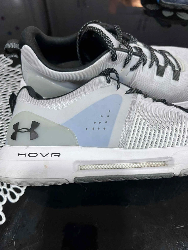 Get ready to elevate your training with these Under Armour HOVR Train athletic shoes! Designed for optimal performance, these shoes feature HOVR technology, providing a zero-gravity feel to maintain energy return that helps eliminate impact, perfect for gym sessions or outdoor workouts. These are in used condition. Key Features: * Brand: Under Armour * Model: HOVR Train * Colour: White/Grey * Technology: HOVR for energy return * Ideal for: Training, Gym, Fitness Ready to step up your fitness game? These Under Armour HOVR Train shoes are waiting for you! Don't miss the chance to snag these fantastic shoes. Act fast—if the ad is up, they’re still available!