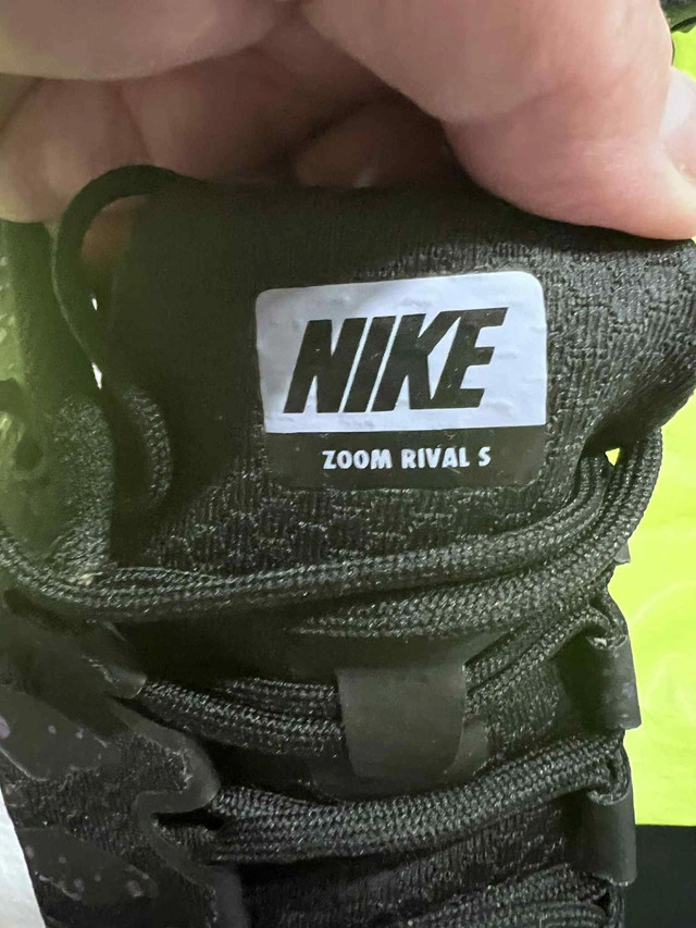 Get ready to sprint with these new Nike Zoom Rival S racing spikes! These shoes are designed for speed and performance on the track, perfect for any serious athlete. I wore them for a single track season so they're still in great shape. Key Features: * Brand: Nike * Model: Zoom Rival S * Ideal for track racing Looking to pass these on to someone who can use them. If the ad is up, they're still available!