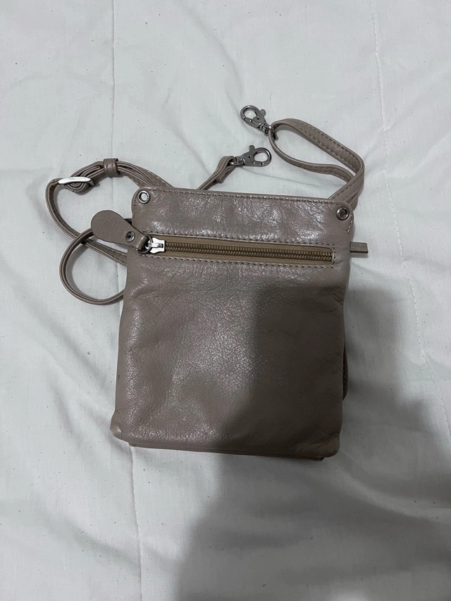 This is a used OriginaLO Metro handbag, perfect for carrying all your essentials! It has several zippered pockets and a magnetic closure. There are a few signs of wear, but overall it's in good condition and ready for a new owner. It's just the right size for carrying your phone, wallet, and keys without being too bulky. Here are some additional details: * Brand: OriginaLO Metro * Material: Genuine Leather * Colour: Taupe * Multiple zippered compartments * Adjustable shoulder strap I'm pricing this at $35, which is fair for a used leather bag of this quality. If you're reading this, it's still available!