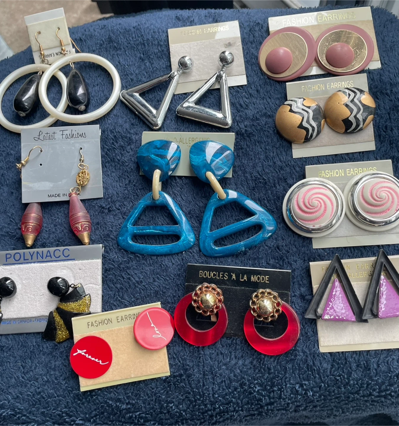 A collection of assorted fashion earrings. Various styles and colours available, including hoops, studs, and dangles. Perfect for adding a touch of flair to any outfit!