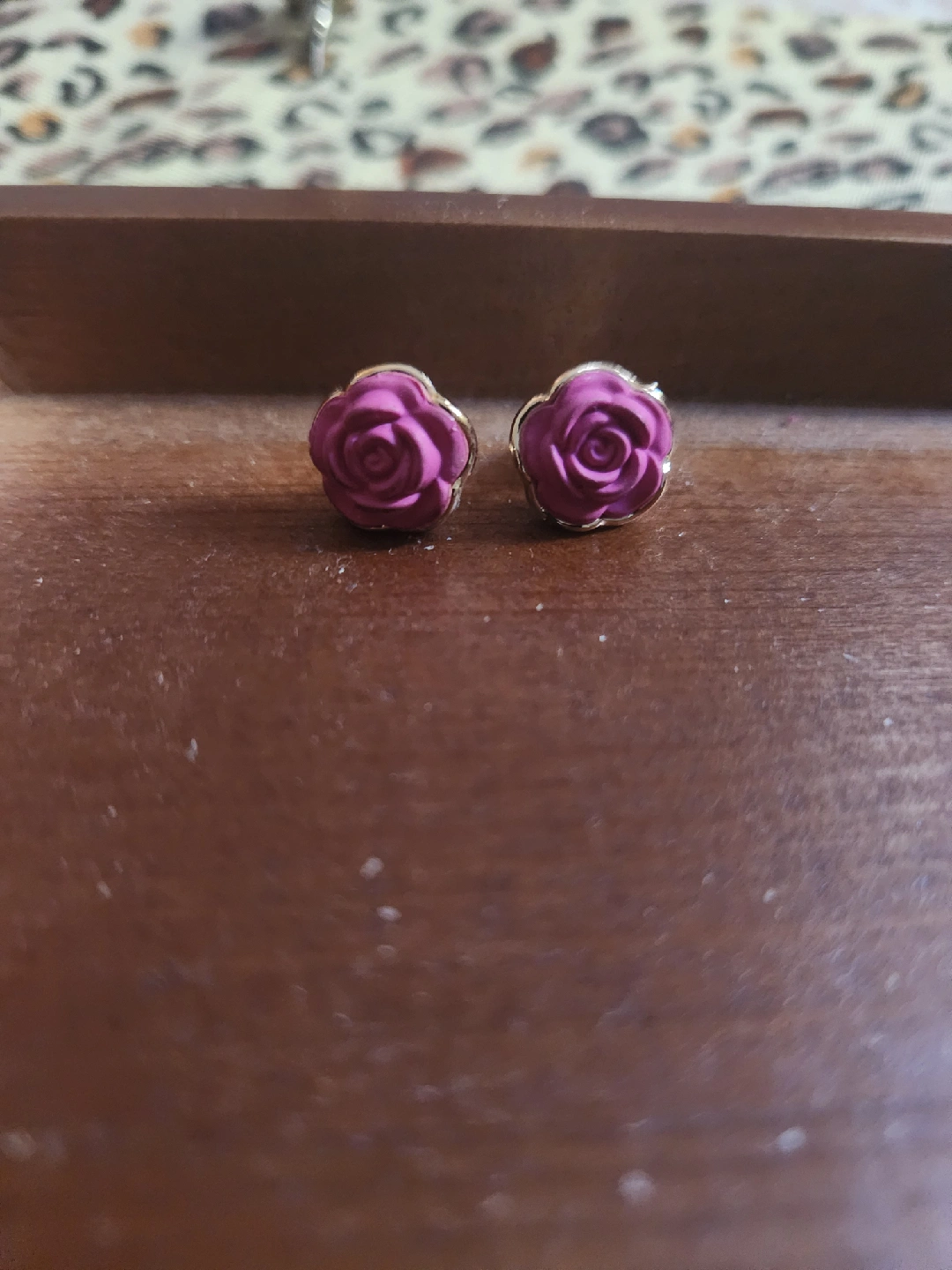 Cute purple rose stud earrings! They are a lovely shade of purple and in great condition. Dm to pickup