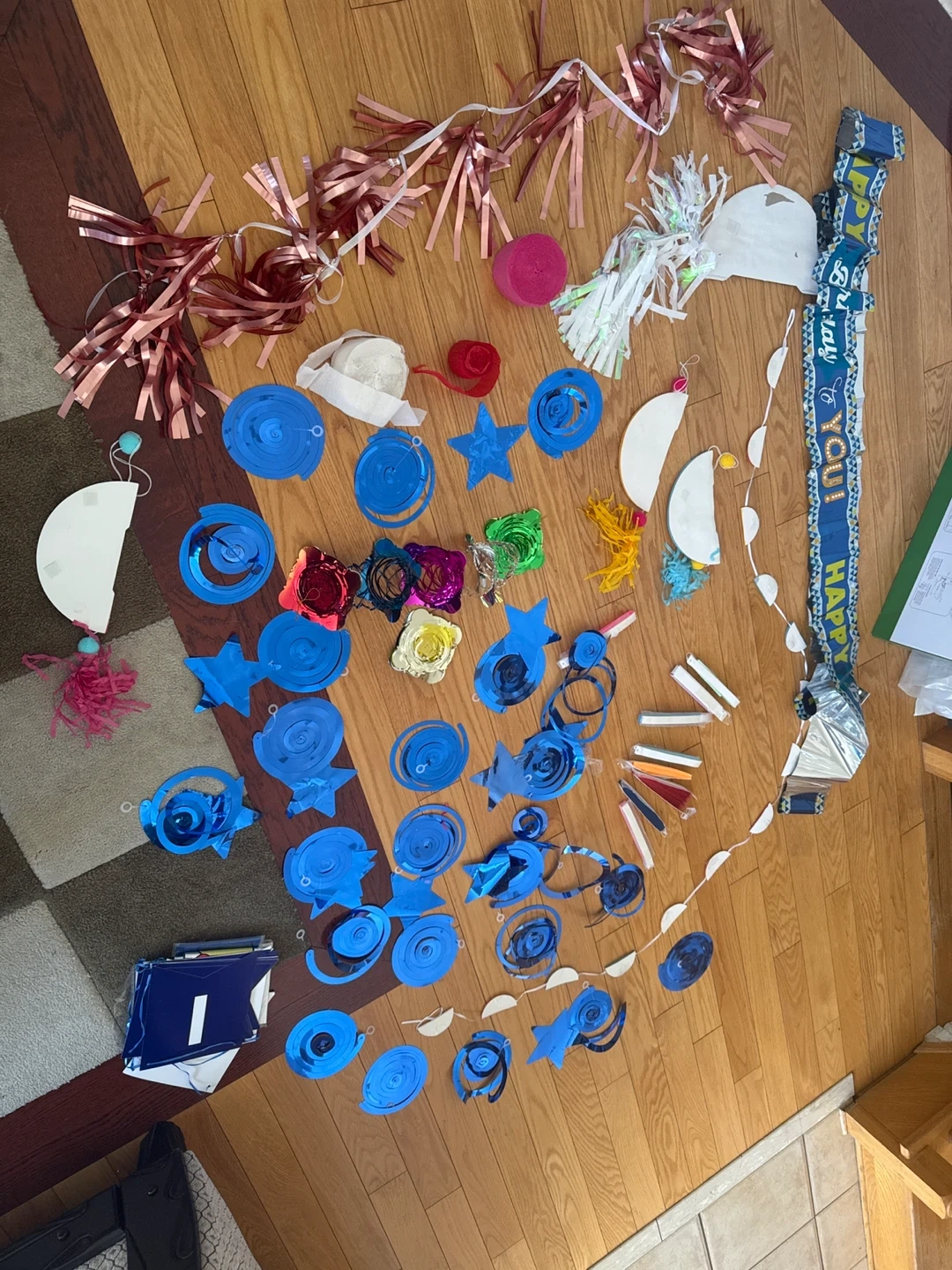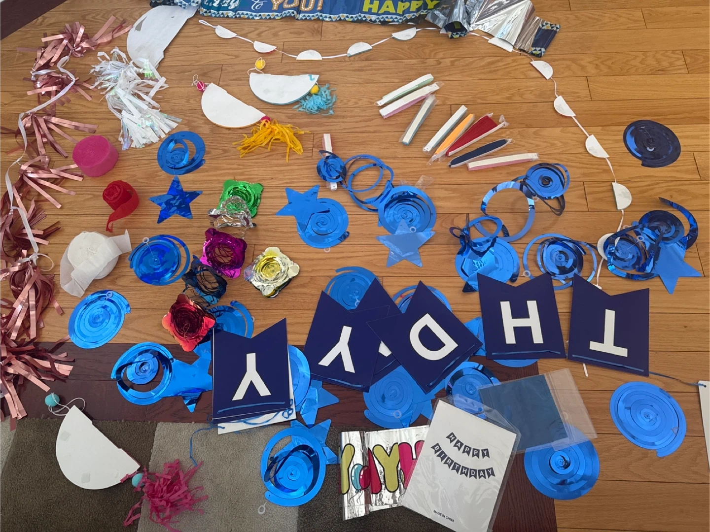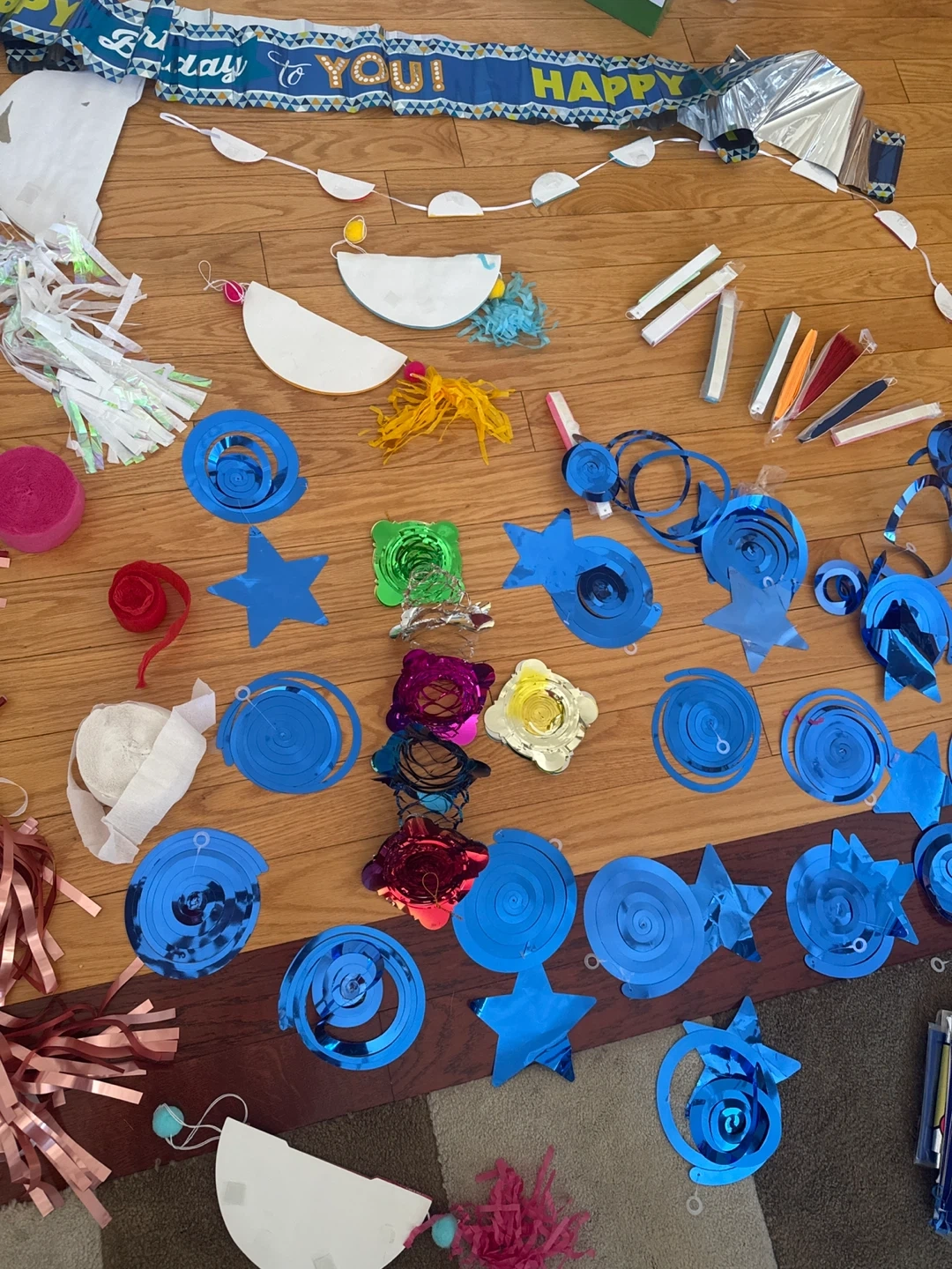 Selling a bundle of party decorations! Includes tinsel, banners, stars, and other hanging decorations in various colours. Perfect for a birthday or any celebration