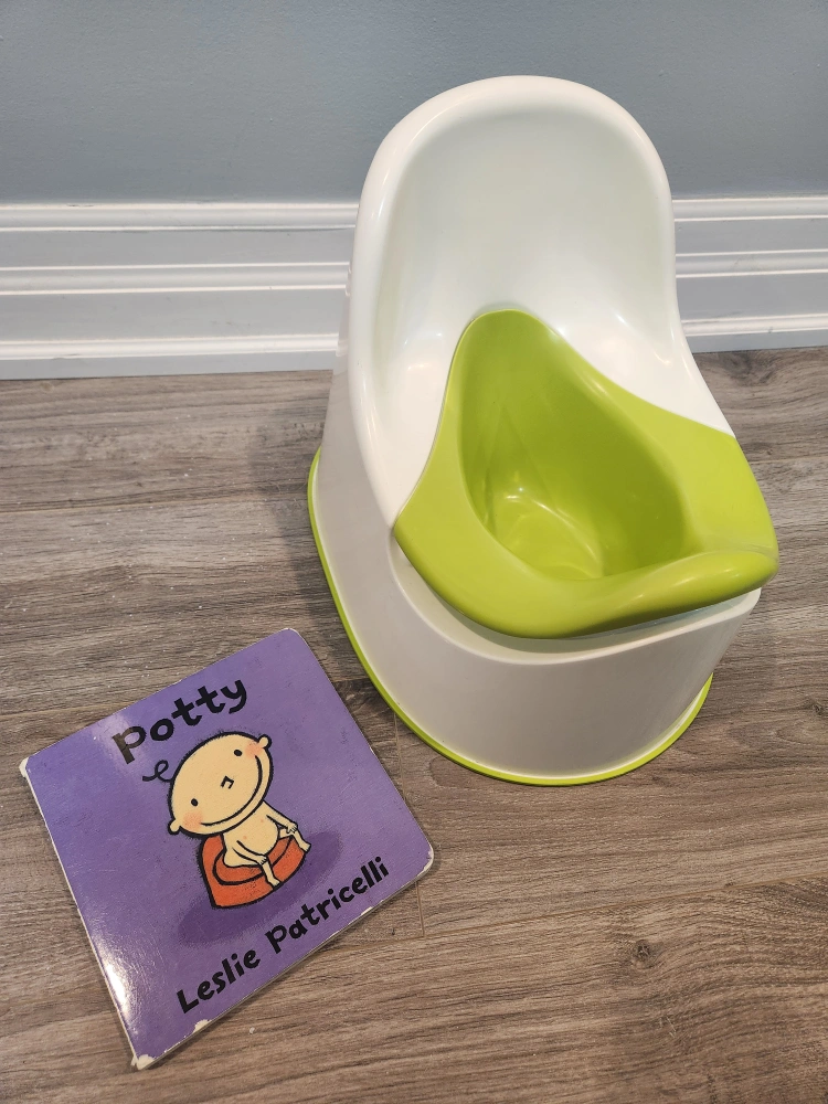 Ikea potty + excellent toilet learning board book by Leslie Patricelli. Pickup near Major Mackenzie & Bathurst