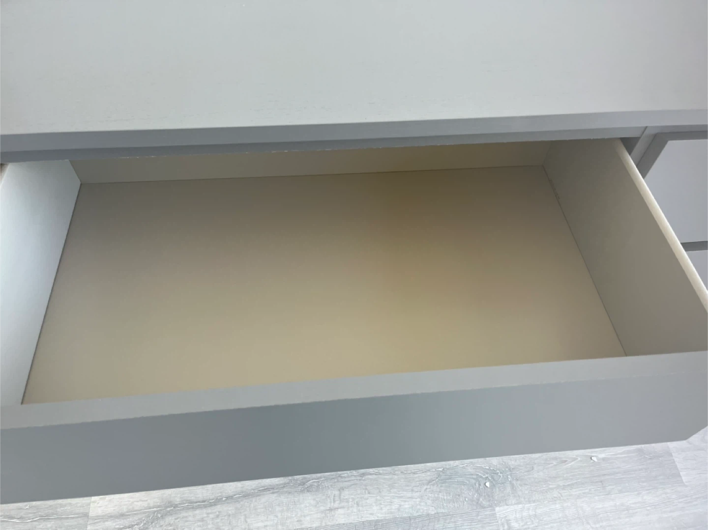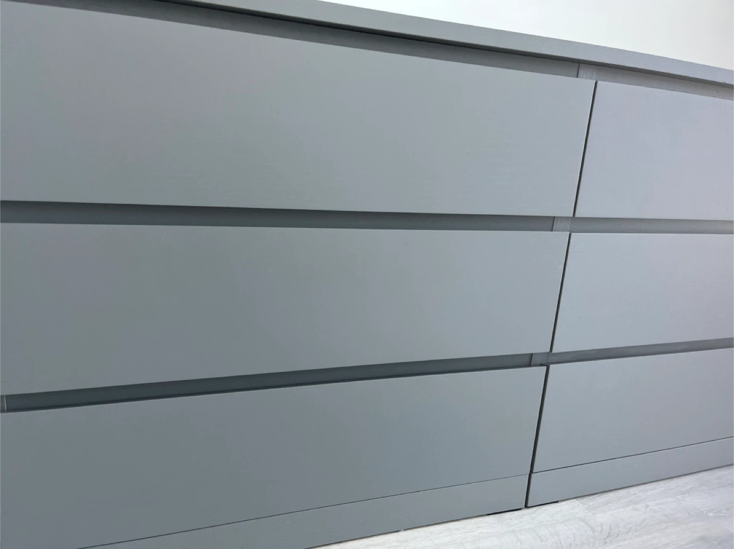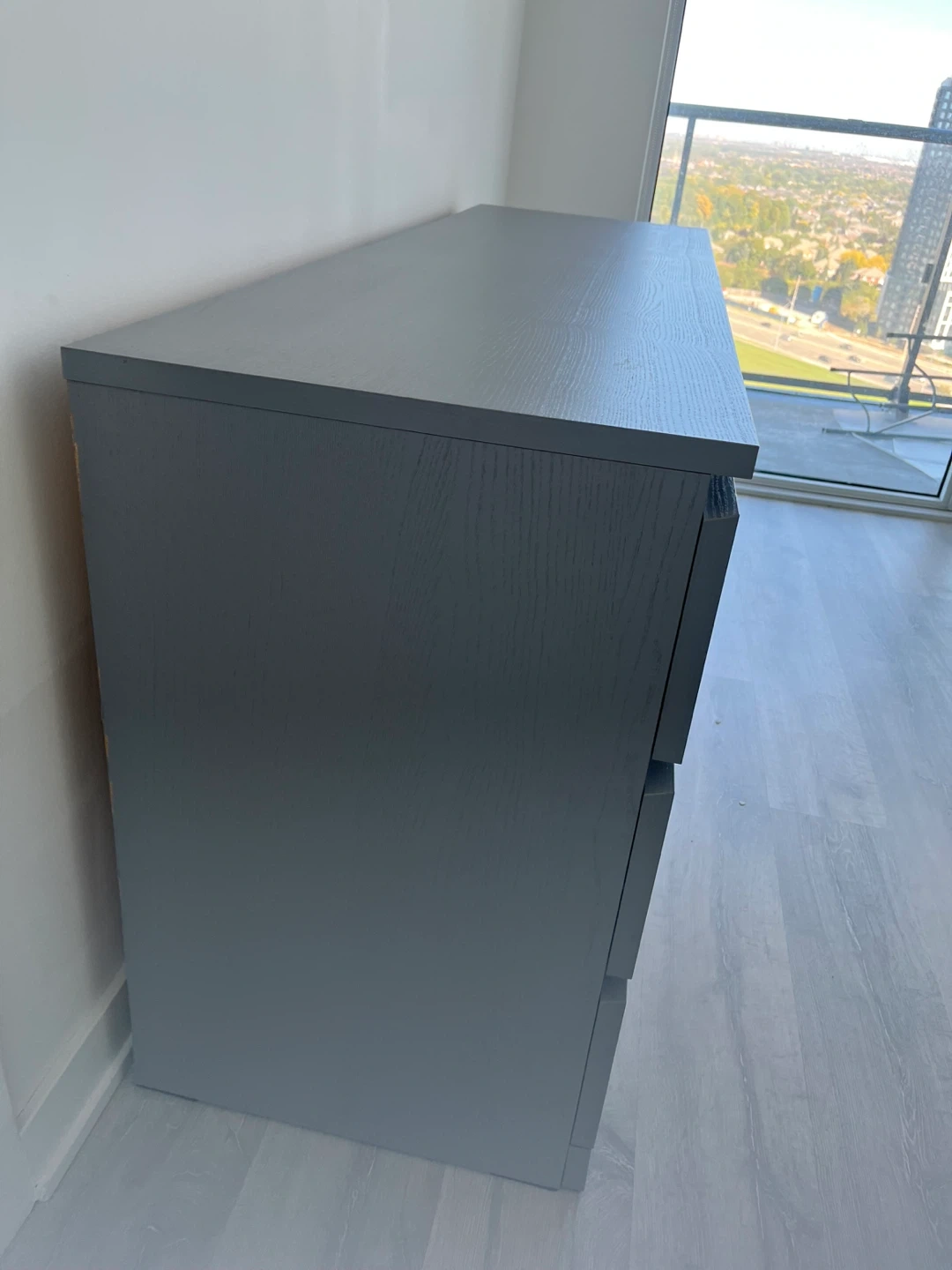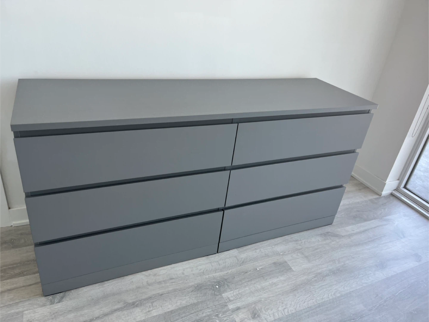 Selling a grey dresser with six drawers. It's unused and ready for a new home! The drawers slide smoothly, offering lots of storage space for your clothes and belongings. Spotless clean!! Drawers come out easily, very lightweight! Original price is $249 + tax. Dimensions: - Width: 140 cm (55 1/8") - Depth: 48 cm (18 7/8") - Height: 75 cm (29 1/2") Will deliver for a small fee :)
