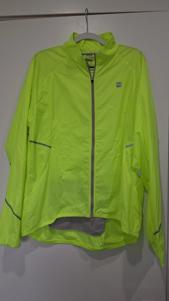 I'm selling a MEC women's jacket in size XL! It's a vibrant neon yellow colour with reflective accents. It's in great condition and ready for a new home! Perfect if you're out running or cycling and want to be seen, especially at night.