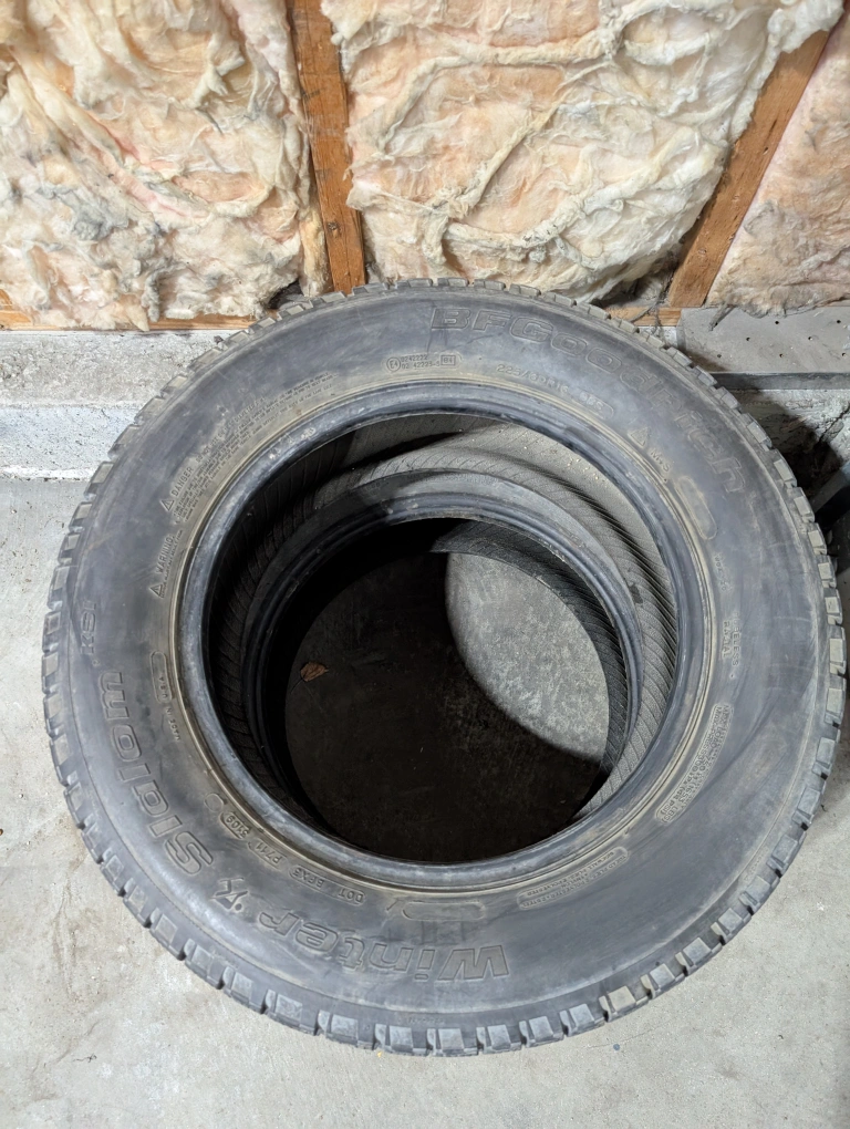 (2)-225/60r16 BFGoodrich Winter Tires 2 Tires Only No Rims 7/32nds Of Tread Left Tires have tread cracking Tires Hold Air But Are Older Cheap pair of tires for someone on a tight budget $80.00 Obo Located Near Concordia and Lagimodiere (#W26)