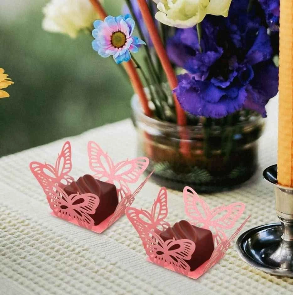Colour: Pink Brand: Alipis Material: Paper Item dimensions L x W x H: 9.8 x 9.8 Centimetres Reusability: Reusable Material feature: Reusable [Hollow Designed] - The hollow butterfly decoration adds a romantic touch and improves the overall beauty of the box, making it a great way to impress your guests. [Easy to Use] - These cupcake wrappers are easy to assemble and use. Simply wrap them around your cupcakes. They fit standard-sized cupcakes and muffins, making them a versatile choice for any occasion. [Material] - Our hollow wrapping paper is made from paper material, which is for long time use. Candy wrappers are for Valentines Day, wedding party chocolate packing, truffle wrapping and so on, convenient to use. [Convenient Packaging] - The box is suitable for packaging and distributing candies and chocolates, making it easy to share with others. 50Pcs hollowed out chocolate wrappers, enough quantity to meet your daily needs. [Wide Application] - Our hollow butterfly lace cupcake wrappers are for weddings, birthdays and other special events. They can also be used for everyday baking, adding a touch of elegance to your homemade cupcakes.