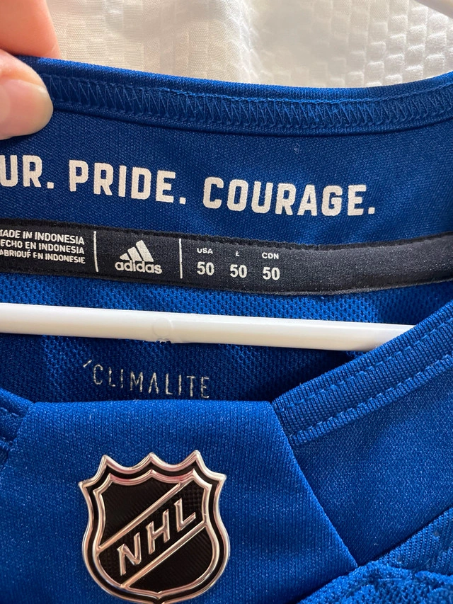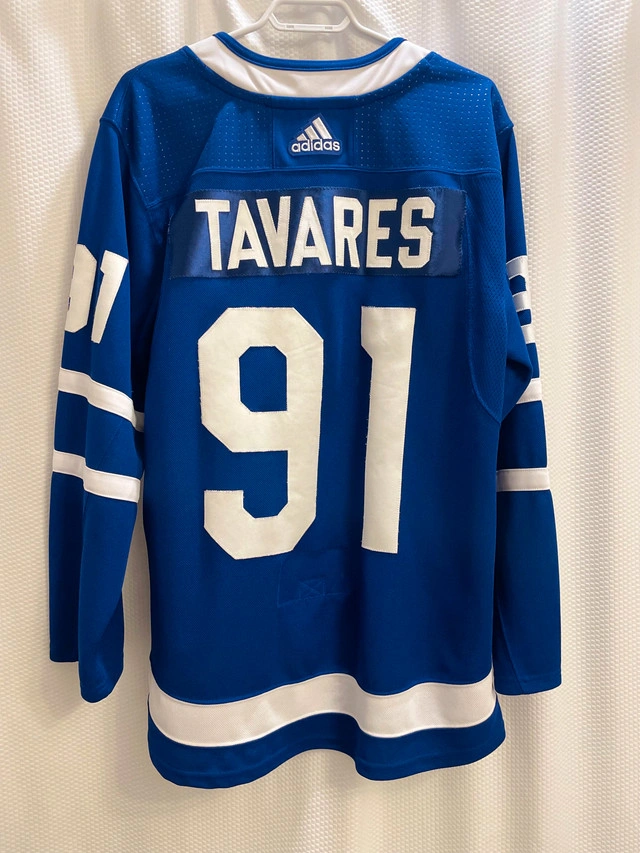 Show your team spirit with this Mint condition Adidas Toronto Maple Leafs Tavares #91 hockey jersey, size large! This used jersey is in great condition and ready for game day or your collection. Features: * Team: Toronto Maple Leafs * Player: John Tavares #91 * Brand: Adidas * Size: Large This jersey is perfect for any Leafs fan. Don't miss out – if the ad's up, it's still available!