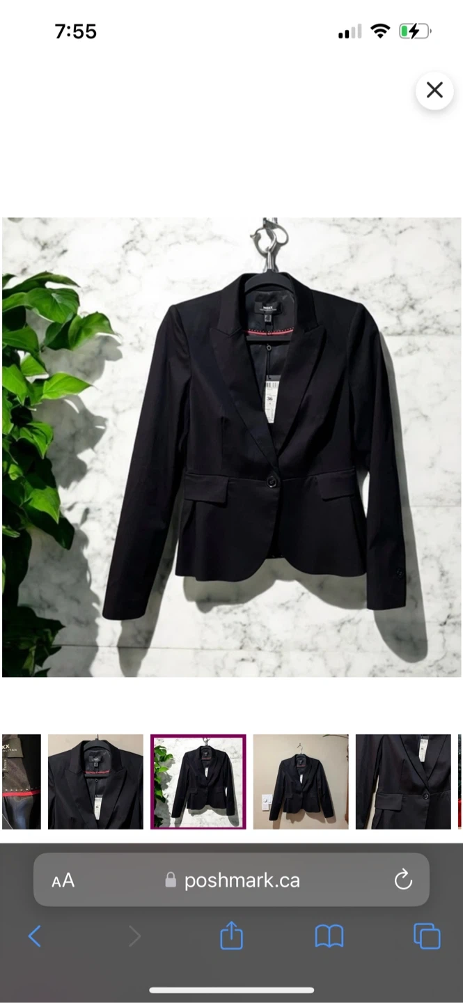 Selling a MEXX black womens fitted blazer in size 38 It's in great condition and perfect for dressing up or down. The blazer is made of a comfortable material and has a classic, tailored fit. Making very flattering on.