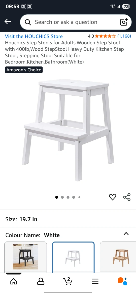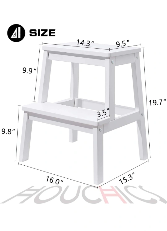 Selling a Houchics footstool in white. It's in great condition and ready for a new home. The size is 19.7 inches. It's a sturdy wooden step stool suitable for the bedroom, kitchen, or bathroom. Comes with the original box