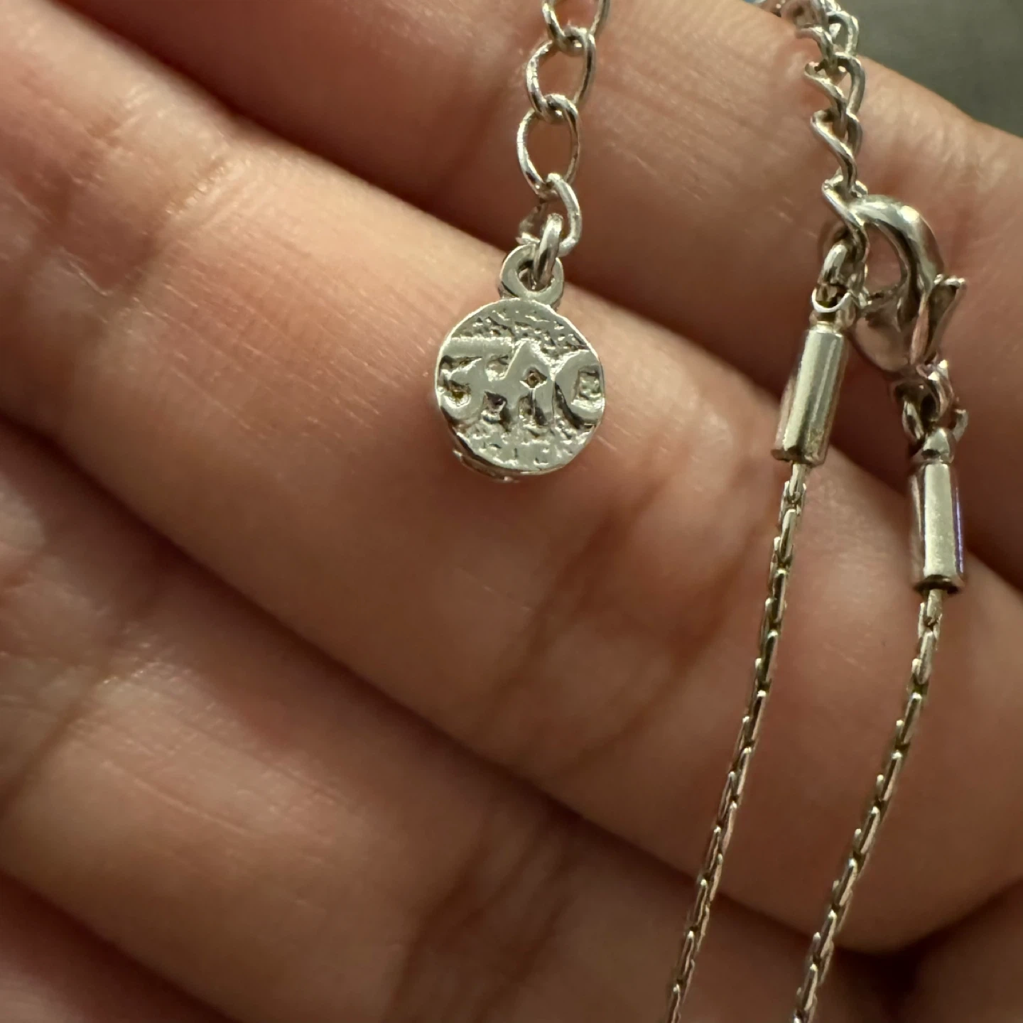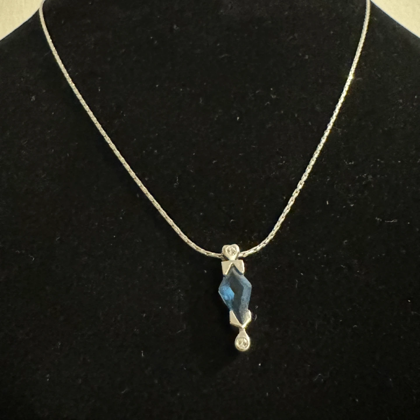 This lovely silver tone pendant necklace is in lovely vintage condition—like new condition. Let me know if you have any questions or require more photos/videos. All photos/video were taken in indoor warm light. Length (end-to-end): 16.25”-18.5” approx.