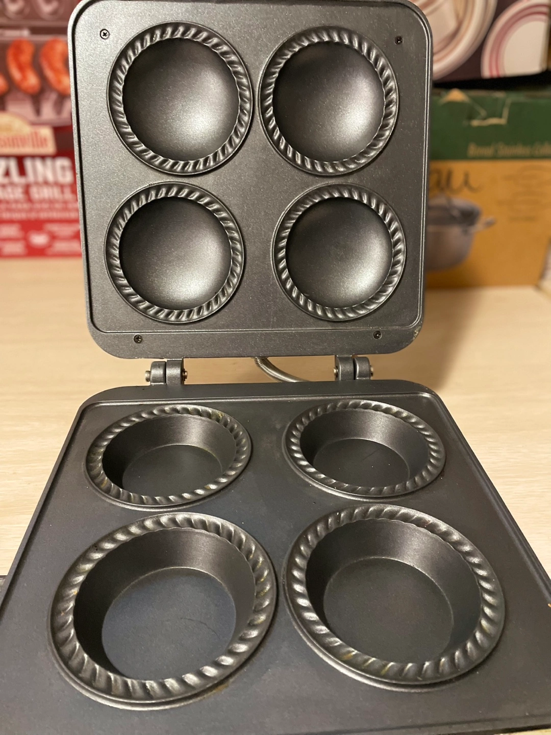 Selling a Breville pie maker in excellent condition! It makes four mini pies at a time, perfect for snacks or desserts. This pie maker is easy to use and clean, and it heats up quickly. It features power and ready indicator lights. Get ready to bake some delicious homemade pies cash only please no e-transfers thank you