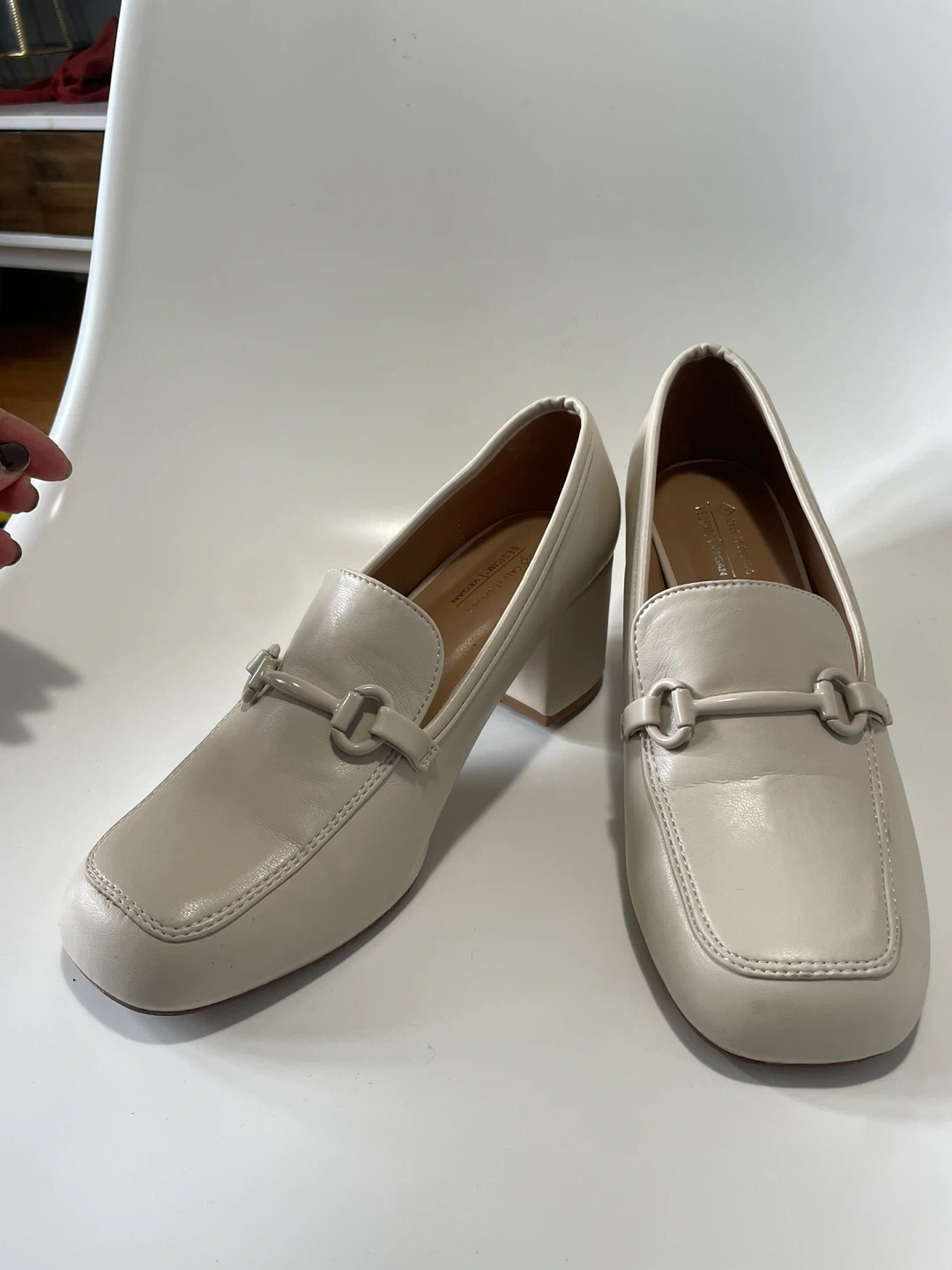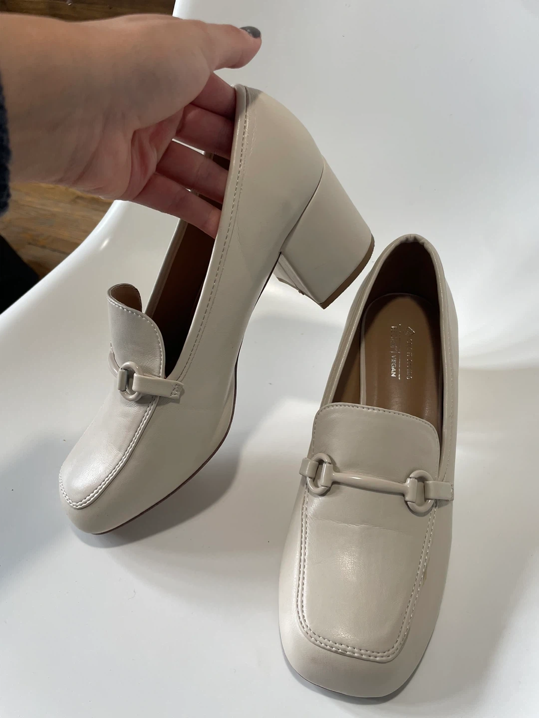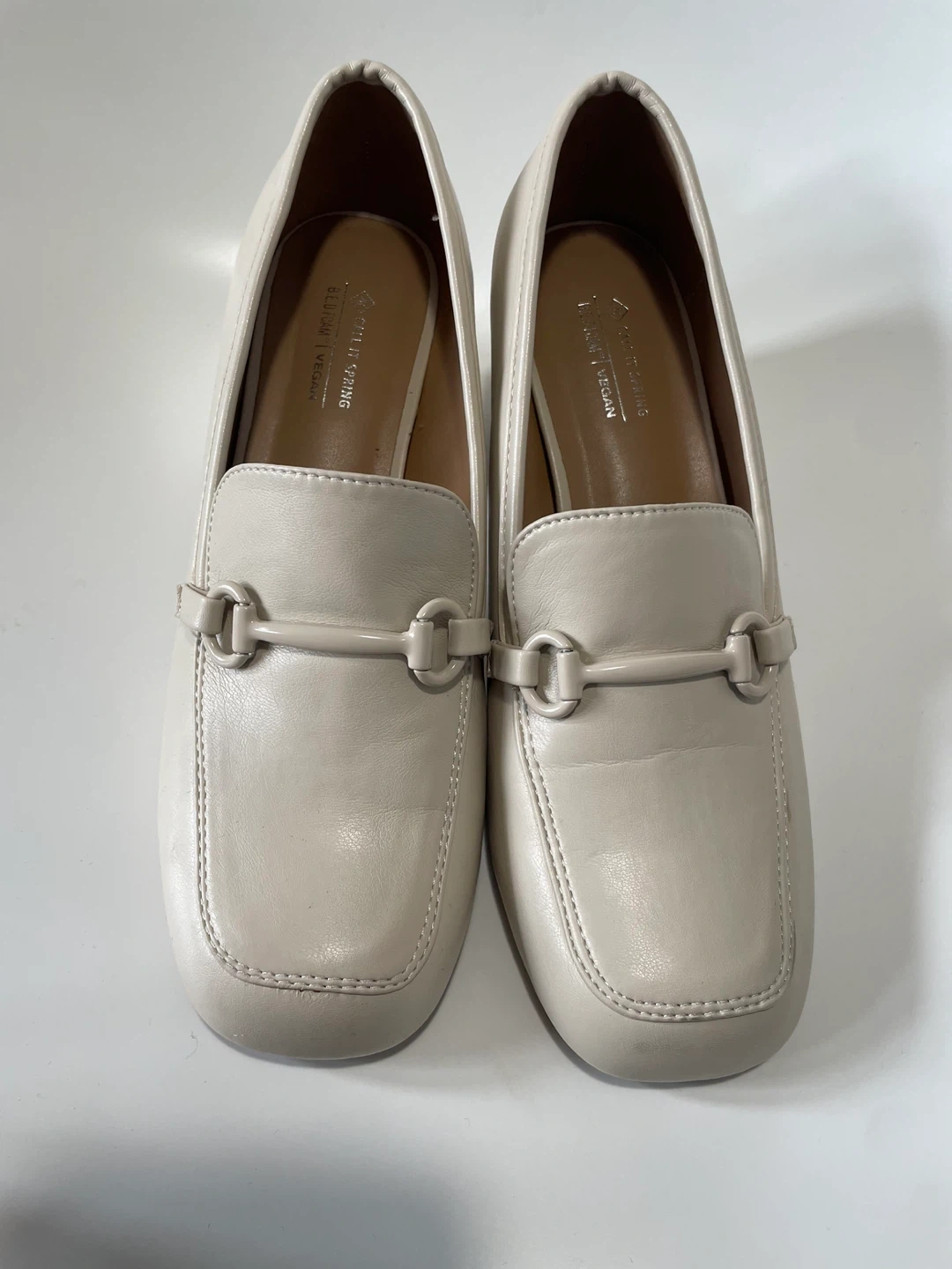 These Call It Spring loafers are in a lovely cream colour and feature a stylish block heel. They're perfect for adding a touch of sophistication to any outfit! Dufferin and st Clair