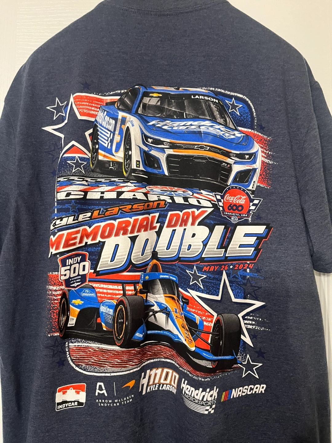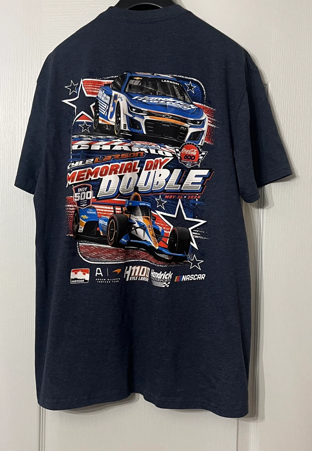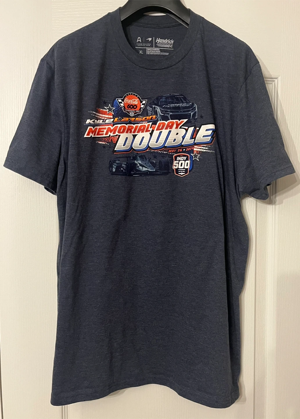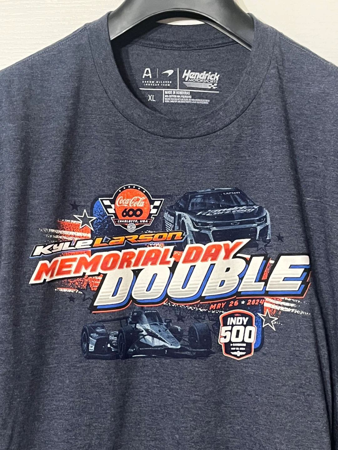 Arrow McLaren Hendrick Motorsports t-shirt! It's a men’s size XL and features a cool design with Kyle Larson's Memorial Day Double.