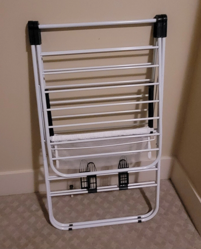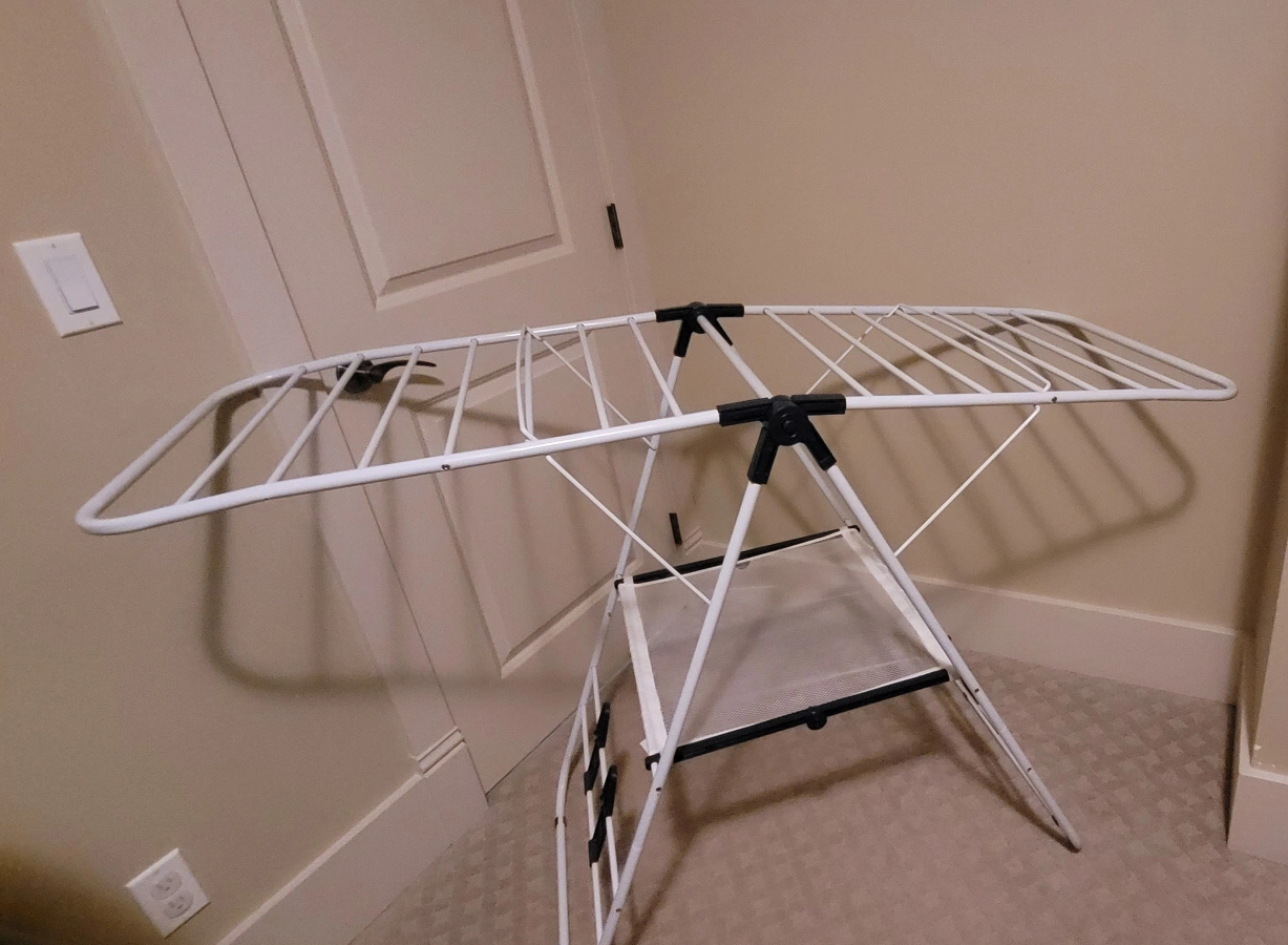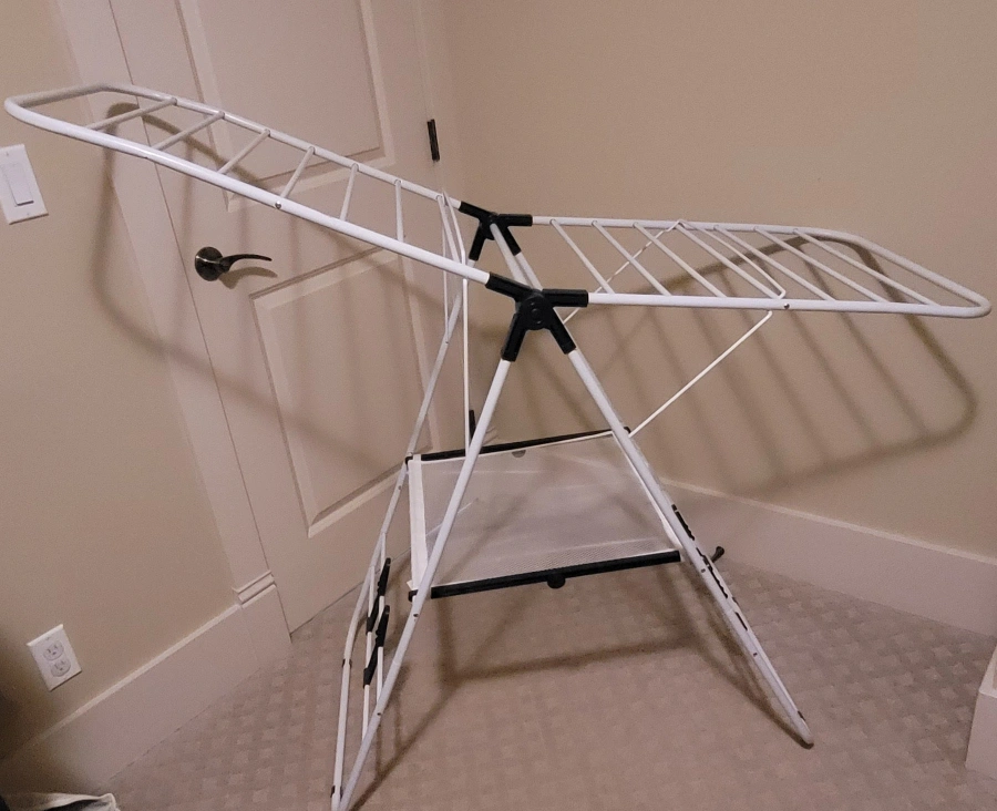 Selling a foldable clothes drying rack. It's in great condition and perfect for saving space when not in use. Folds up easily for storage!