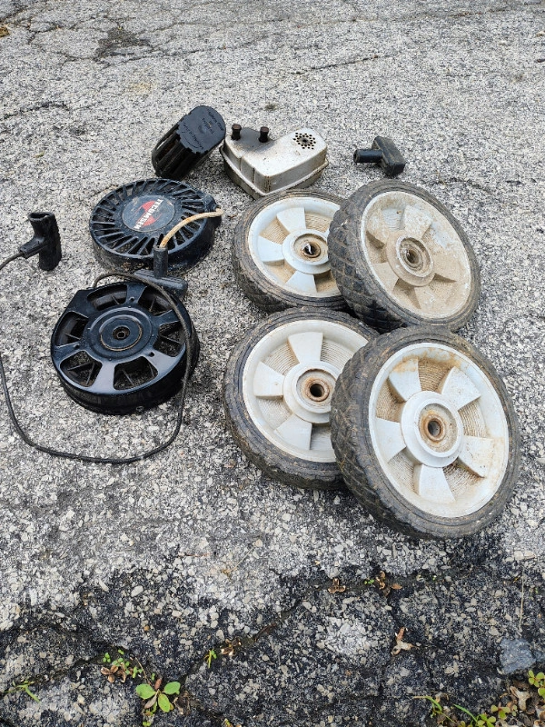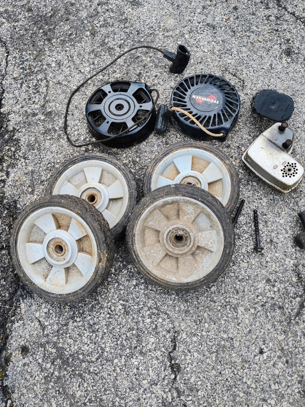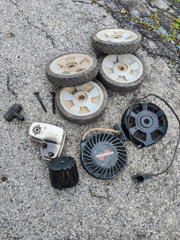 Lawnmower parts for sale in good usable condition. What you see in the photos you get. Asking $25 for the lot let me know. Thank you