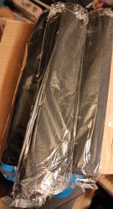 Solid coloured & flameproof crepe Streamers for sale brand new still in packaging. I have 12 white and 8 black streamers great for Arts,crafts or packaging. Asking $4 for each package let me know. Thank you