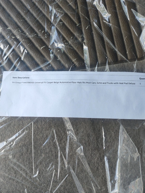 Brand new universal FH Group beige carpet floor mats with heel pad and Velcro backing. Fits most cars, SUVs, and trucks. Asking $40. Thank you!