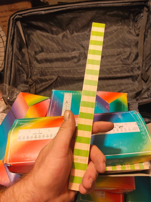 Wood rulers without the measurement on them. Each box has 100 rulers. Asking $5 a box obo. Great for hobbies and crafts and much more... Let me know. Thank you