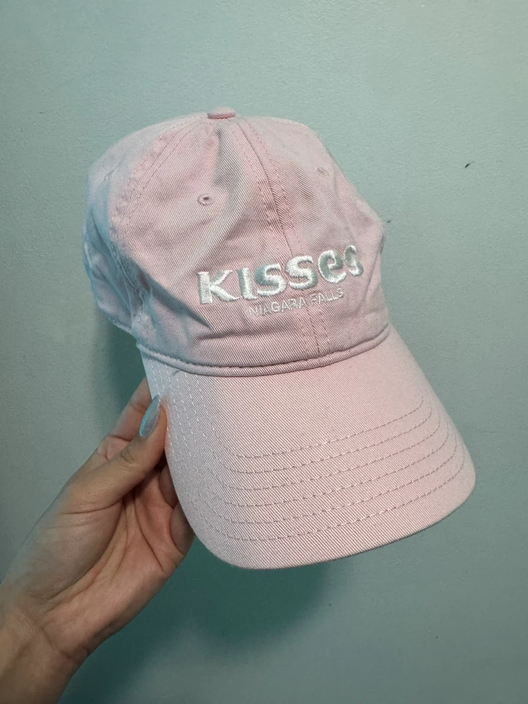 Selling a cute pink baseball cap! It says 'Kisses Niagara Falls' on the front. The brand is OTTO. It's in great condition and ready for a new home