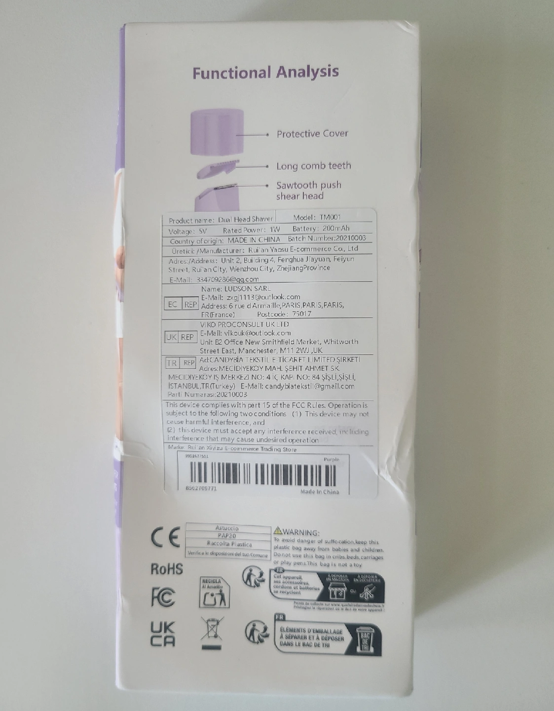 Selling a dual-headed shaver, model TM001. It features a sawtooth push shear head and a long comb teeth design. The pushing scissors head is for repairing long hair and the round head blade is for shaving hair roots. Never opened or used. Box is bent from storage. Cash only Pickup near or at Cornell Public Library, or Delivery to Markham, Pickering, or Stouffville