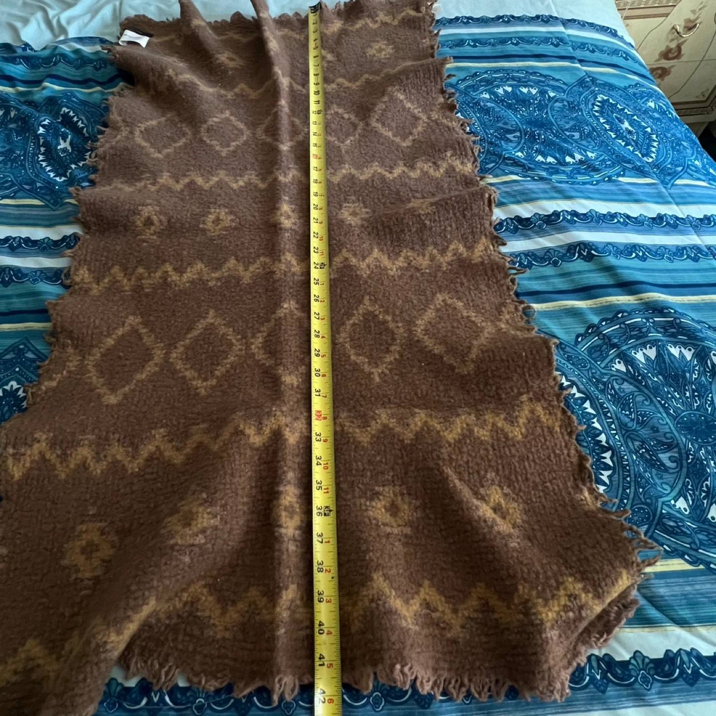 A cozy brown wool throw blanket with a unique diamond pattern! It's perfect for adding a warm touch to your living space. The blanket measures approximately 42 inches in length and 23 inches in width.