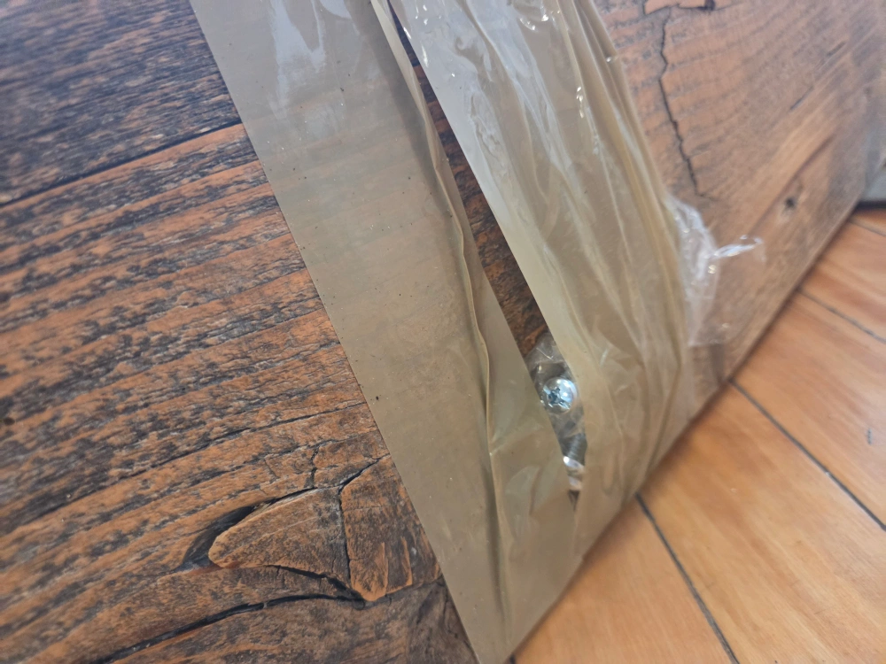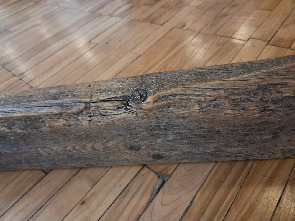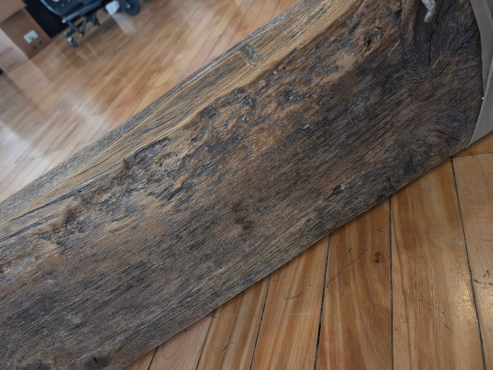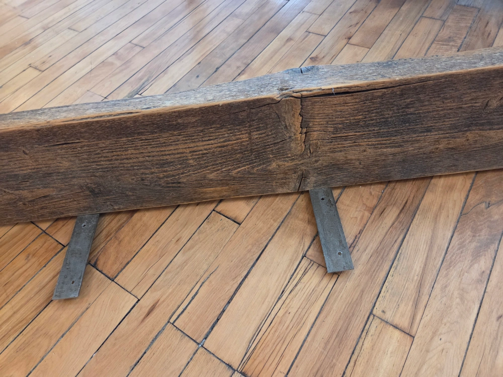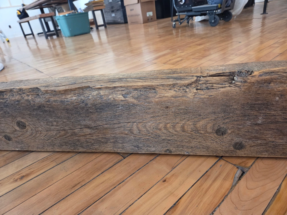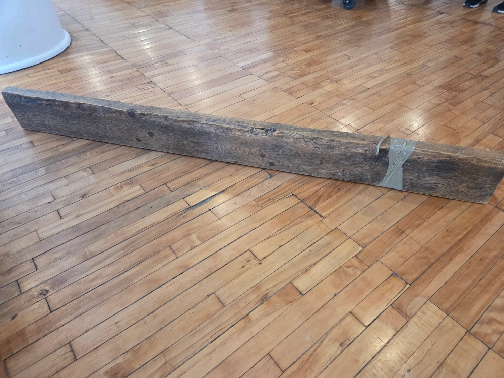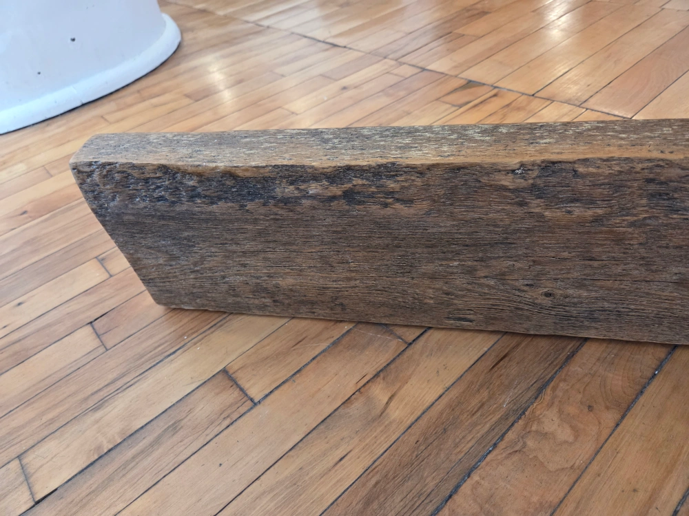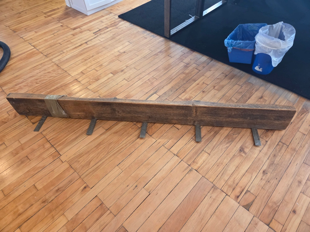 Beautiful reclaimed wood shelf. Metal brackets. Hardware included. 80 x 8 x 2.5ish Pick up only at Richmond/Spadina - weekdays, work hours.