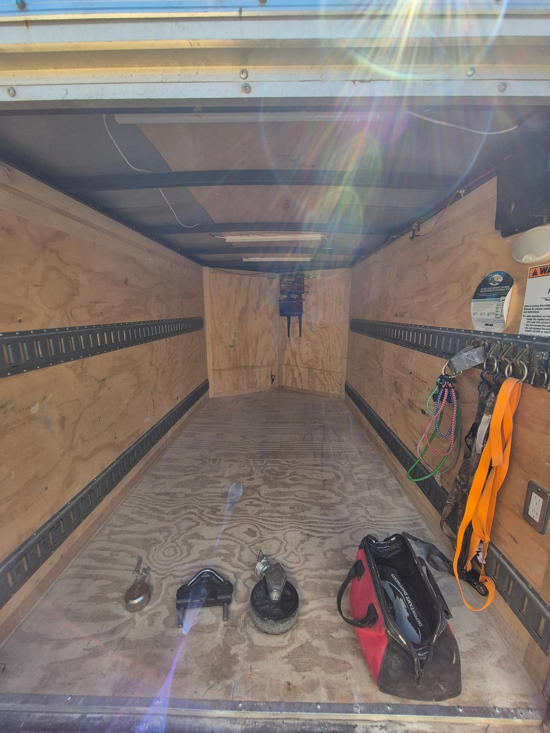 Selling a great 5x8 enclosed trailer with v-nose and lots of upgrades and well taken care of. #Full electrical system, with: 4x small solar panels on the roof 2x battery system for longer duration 2x USB output 1x 120V outlet (150w) 4x LED bright lights #Other upgrades: Stabilizers - Rear foldable support stands/legs for extra parking support and work Camera system with car mirror screen (included) Side rails with E-Track system, with hooks and belts included Trimax Trailer coupler/ball lock Heavy duty Door lock Caster wheel for easy moving